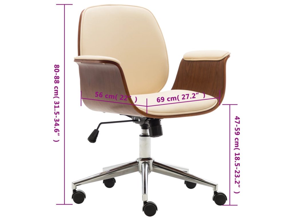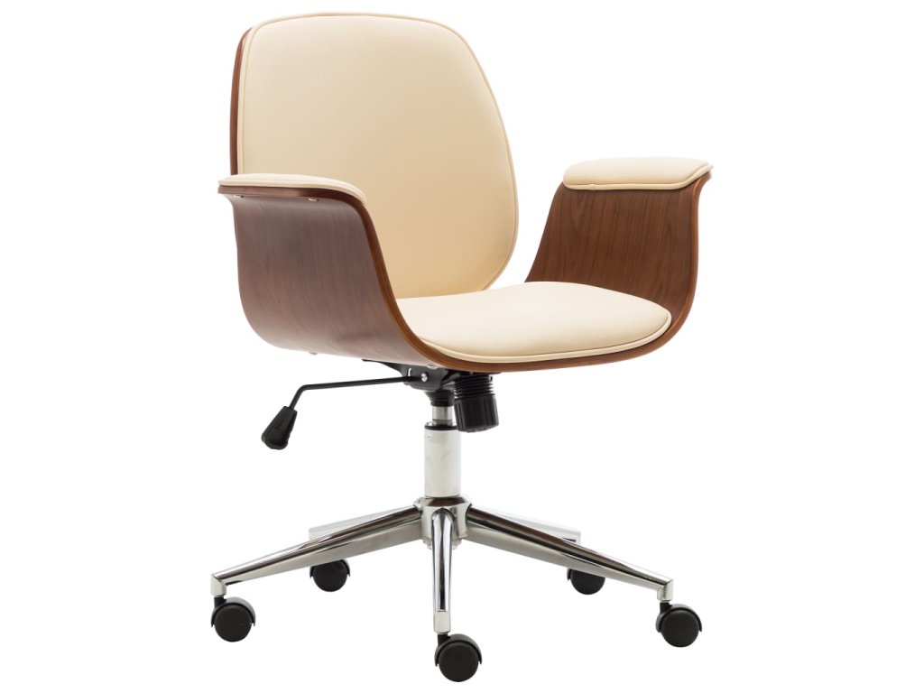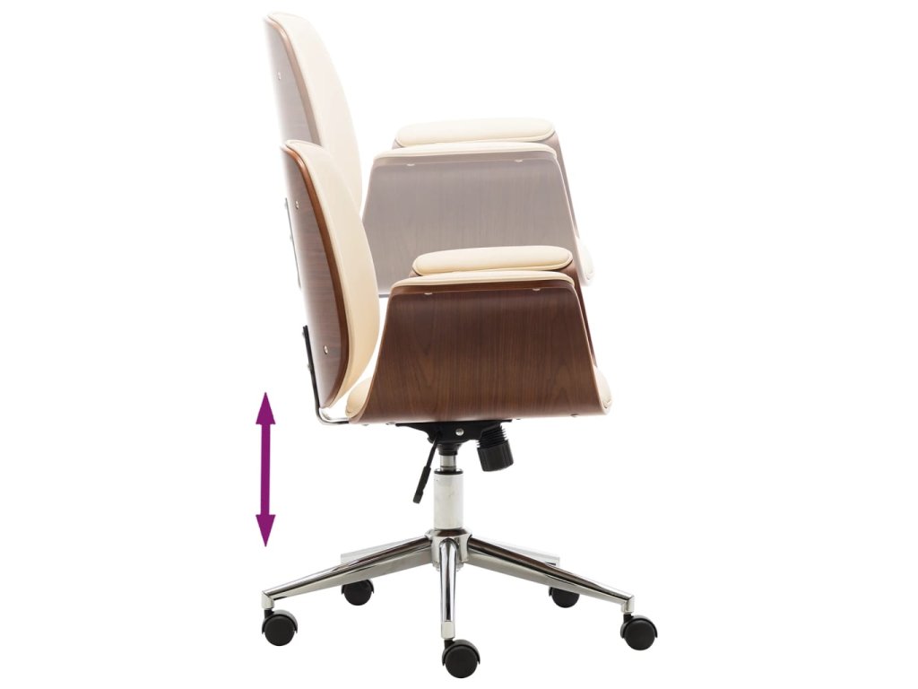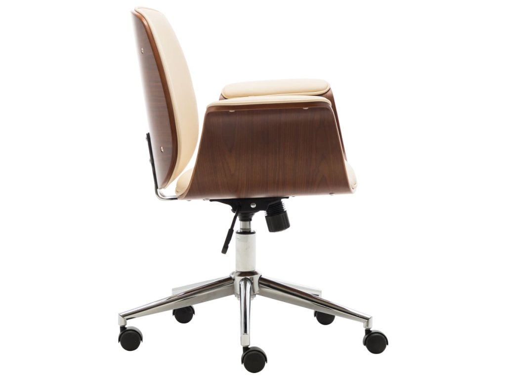 Křeslo je čalouněné umělou kůží, která se snadno čistí a poskytuje optimální pohodlí. Rám z ohýbaného dřeva mu dodává jedinečnou krásu a styl. Židle má pět pojezdových koleček pro snadné přesouvání.