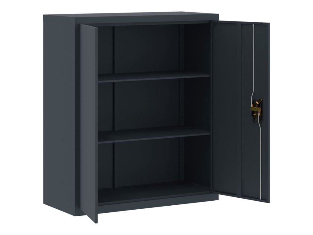 - Nastavitelné police: Úložná skříňka je vybavena 2 nastavitelnými policemi, které umožňují přehledné třídění souborů do různých kategorií.