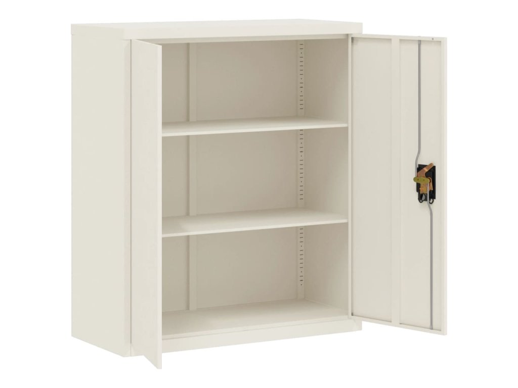 - Nastavitelné police: Úložná skříňka je vybavena 2 nastavitelnými policemi, které umožňují přehledné třídění souborů do různých kategorií.