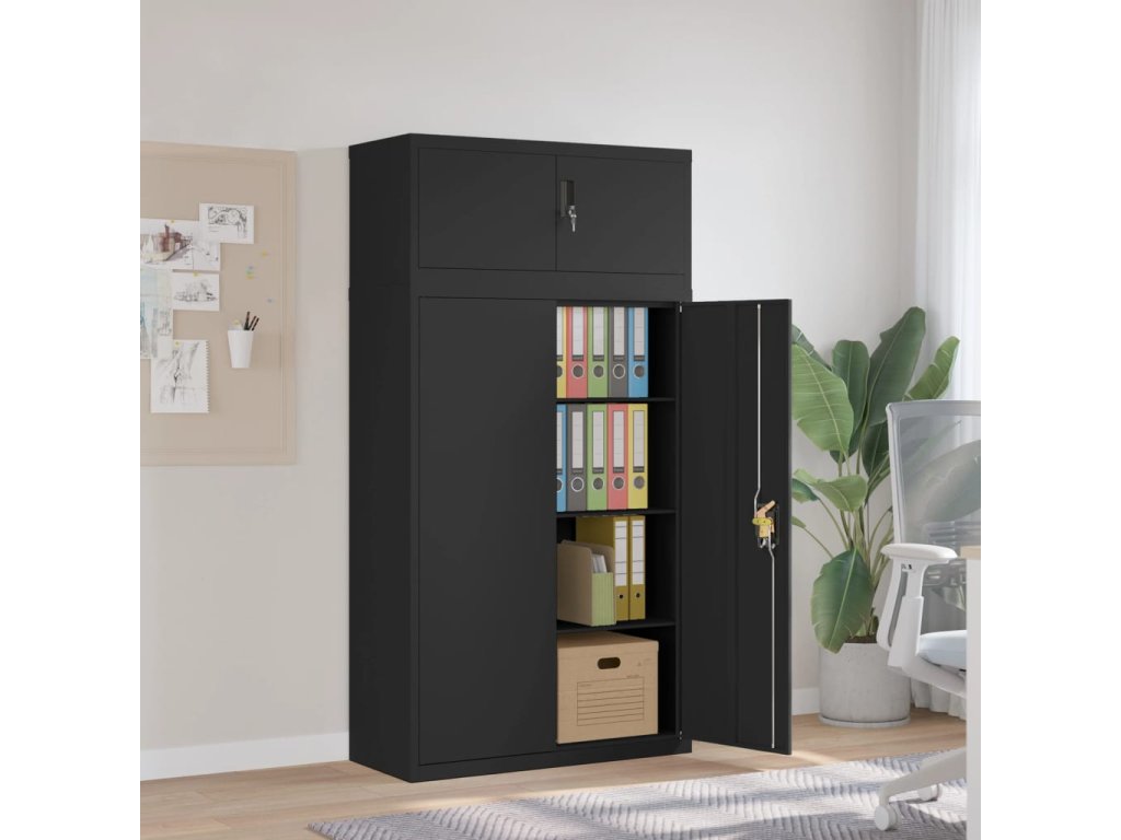 - Nastavitelné police: Úložná skříň je vybavena 3 nastavitelnými policemi, které umožňují přehledné třídění souborů do různých kategorií.