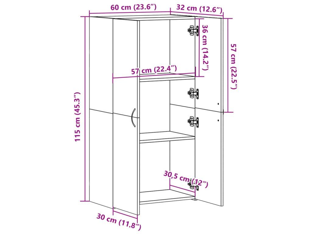 - Rozměry: 60 x 32 x 115 cm (D x Š x V)