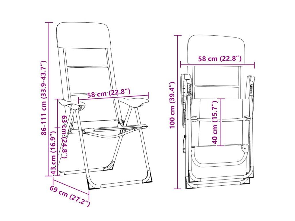 Tato sada 2 kempingových židlí z hliníku se skvěle hodí na lov, kempování, rybaření, cestování a další aktivity na čerstvém vzduchu. Židle se dají nastavit do 5 poloh a disponují měkkými, polstrovanými opěrkami hlavy.