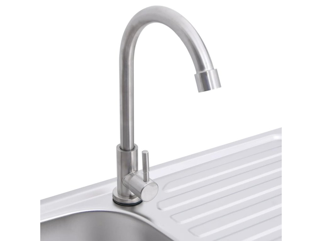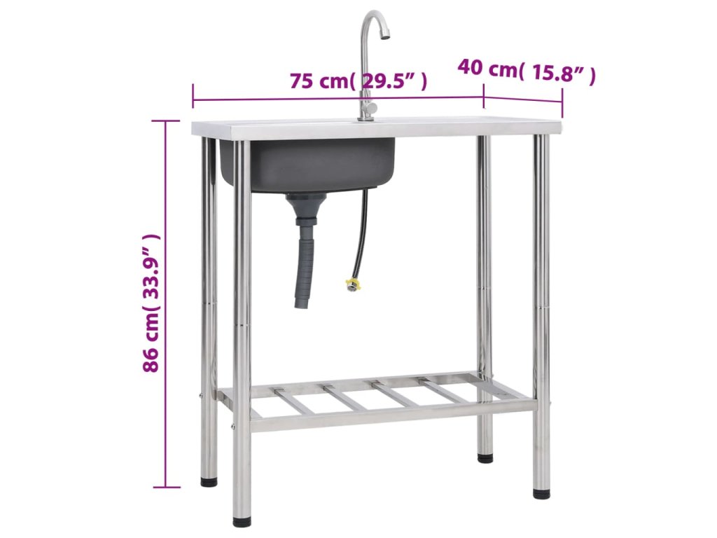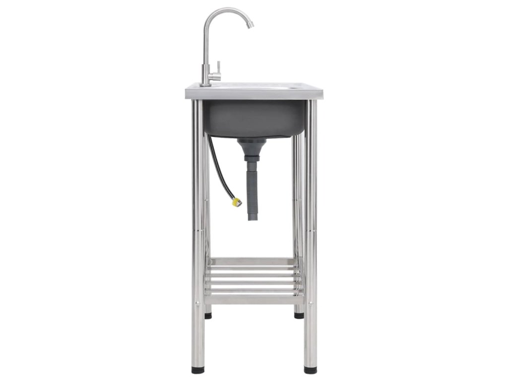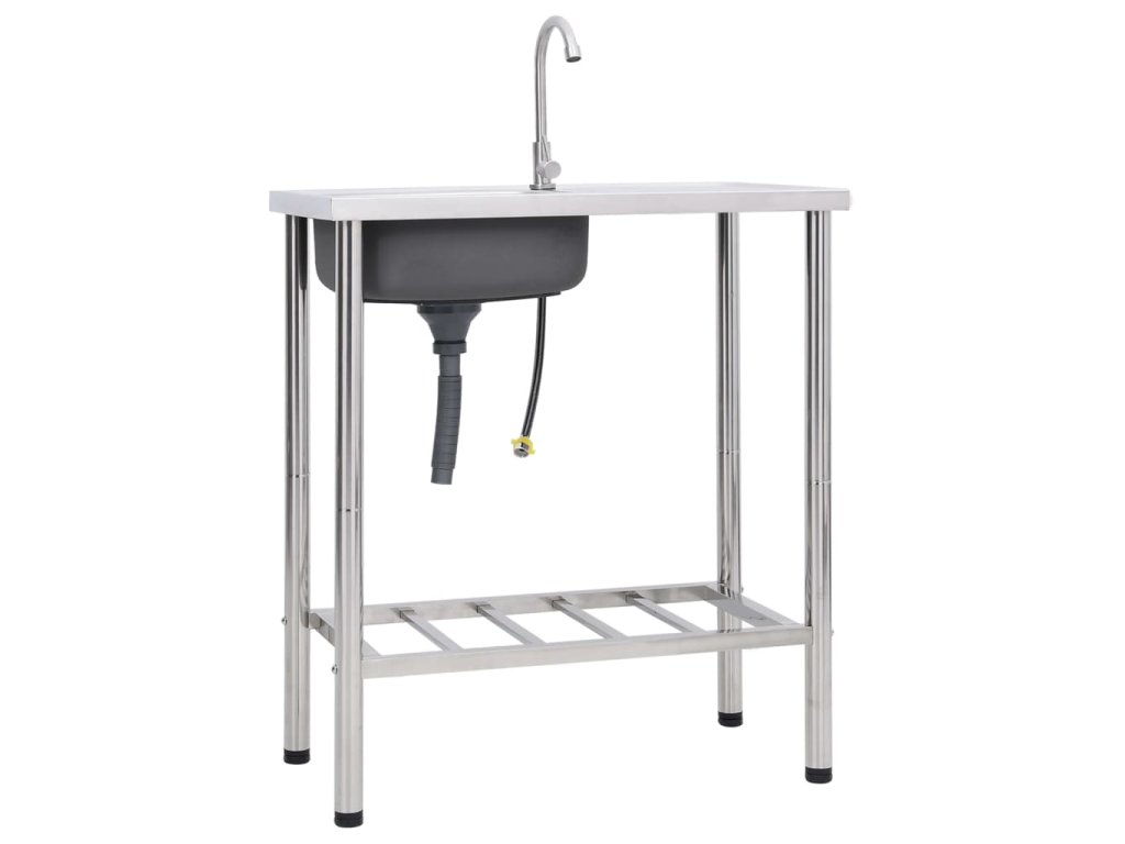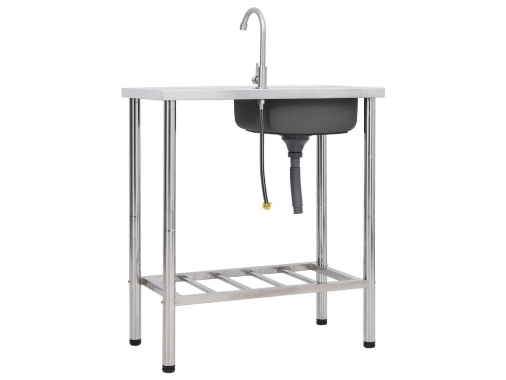 Tento kempingový dřez z nerezové oceli je odolný proti poškrábání a nárazům, má velmi dlouhou životnost a je určený pro styk s potravinami. Také odpuzuje nečistoty a nedělají se na něm skvrny, takže se snadno čistí. Extra hluboké umyvadlo je dostatečně objemné pro mytí velkých hrnců a nádobí. Odkapávací plocha vám přijde vhod nejen při mytí nádobí, ale i jako další místo pro krájení zeleniny. Dřez se navíc snadno přepravuje.