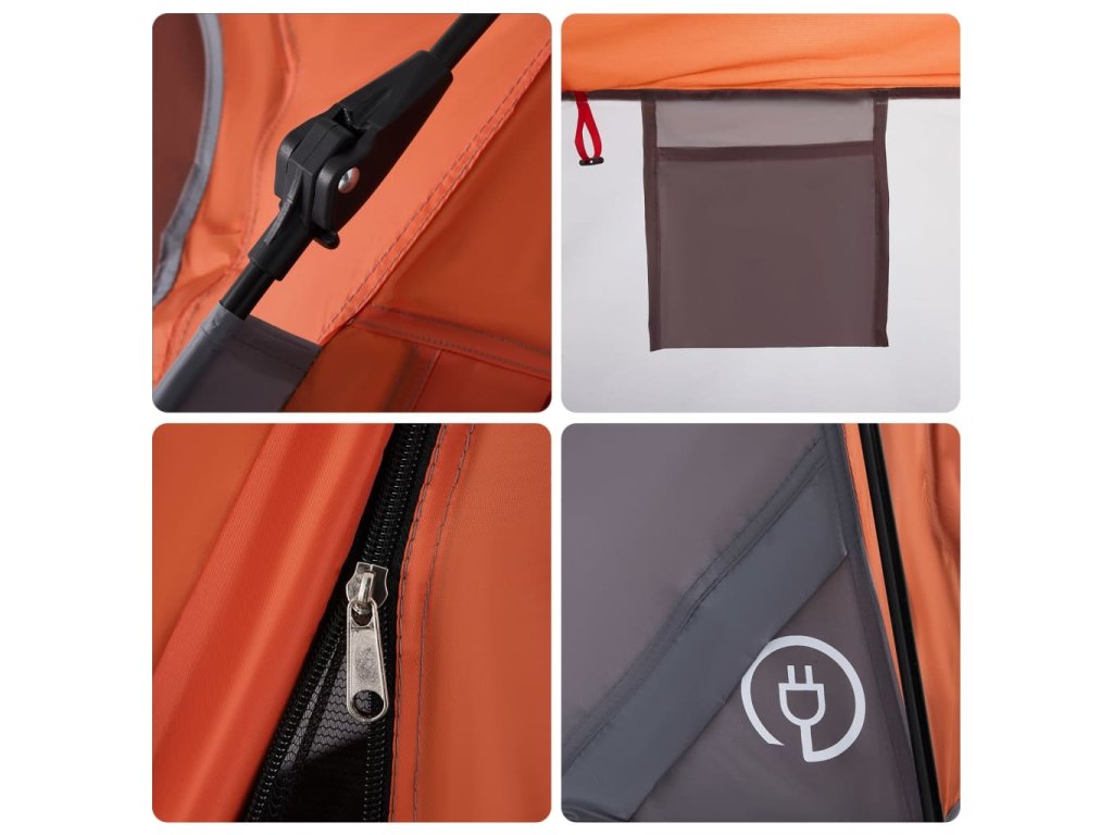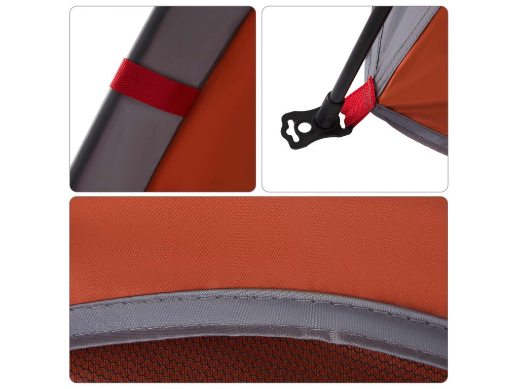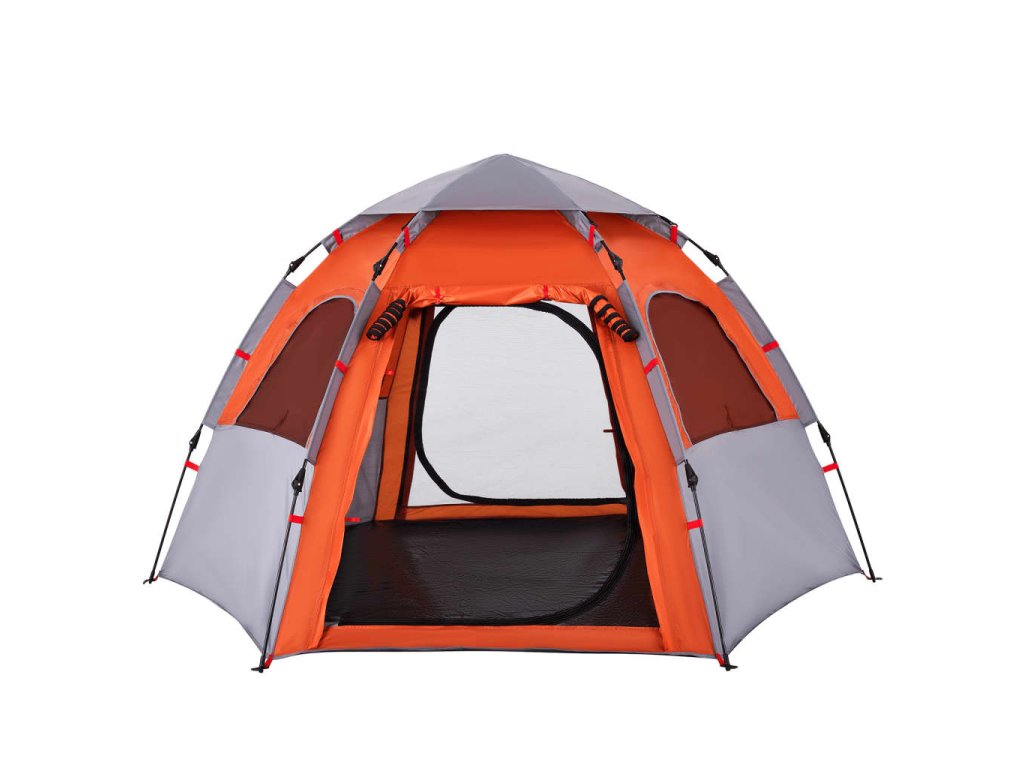 - Rychloupínací systém: Postavte stan snadno a bez námahy pomocí rychloupínacího systému! Stan položte na zem, roztáhněte předem sestavené tyče, dokud nezapadnou na své místo, a vše je hotovo!