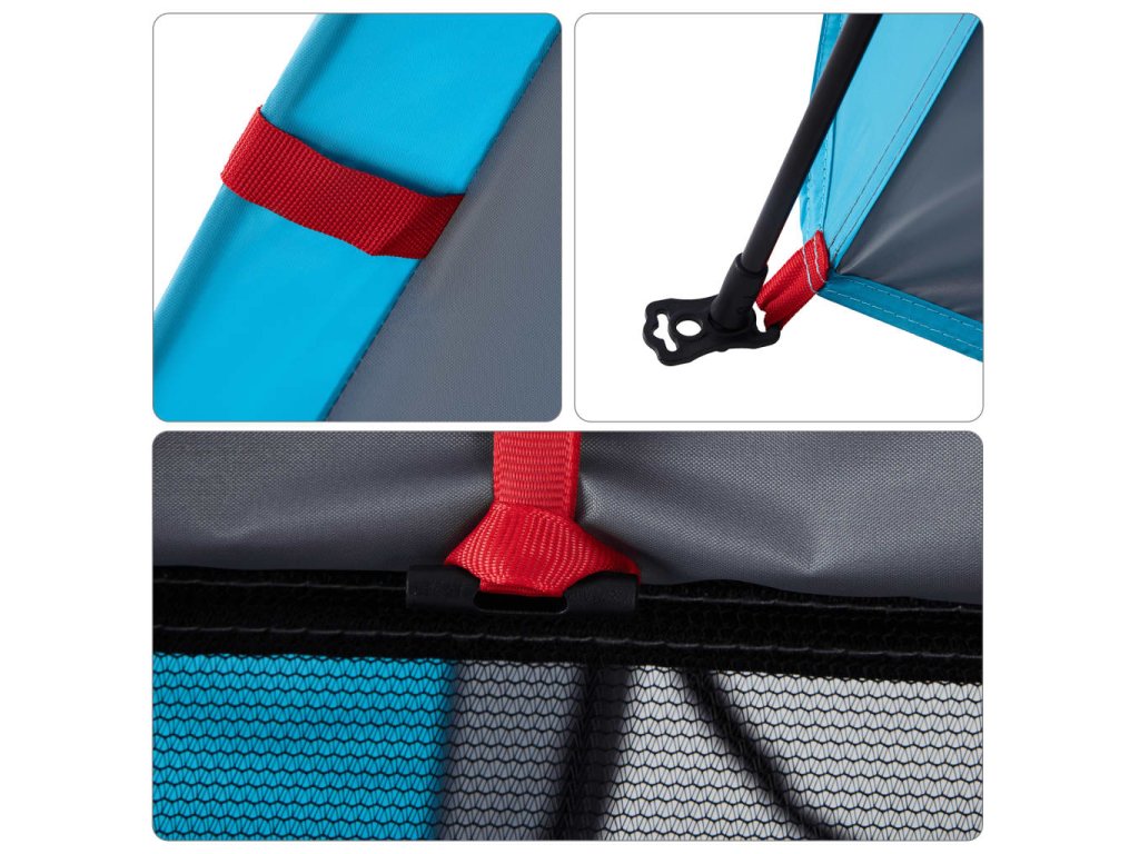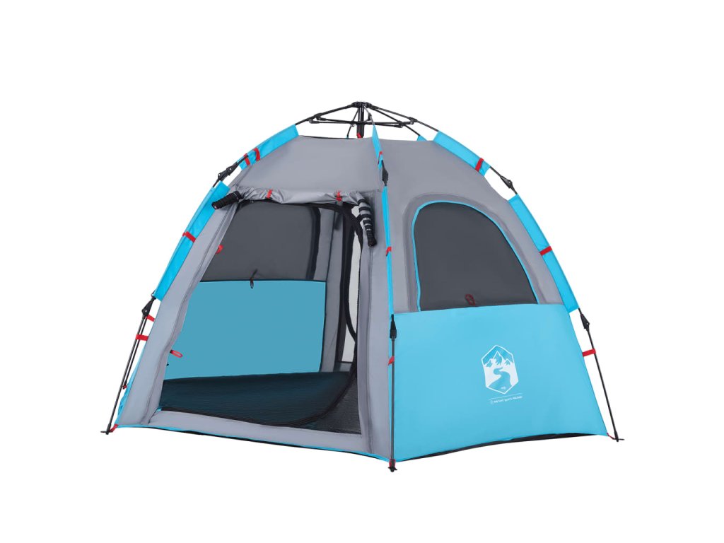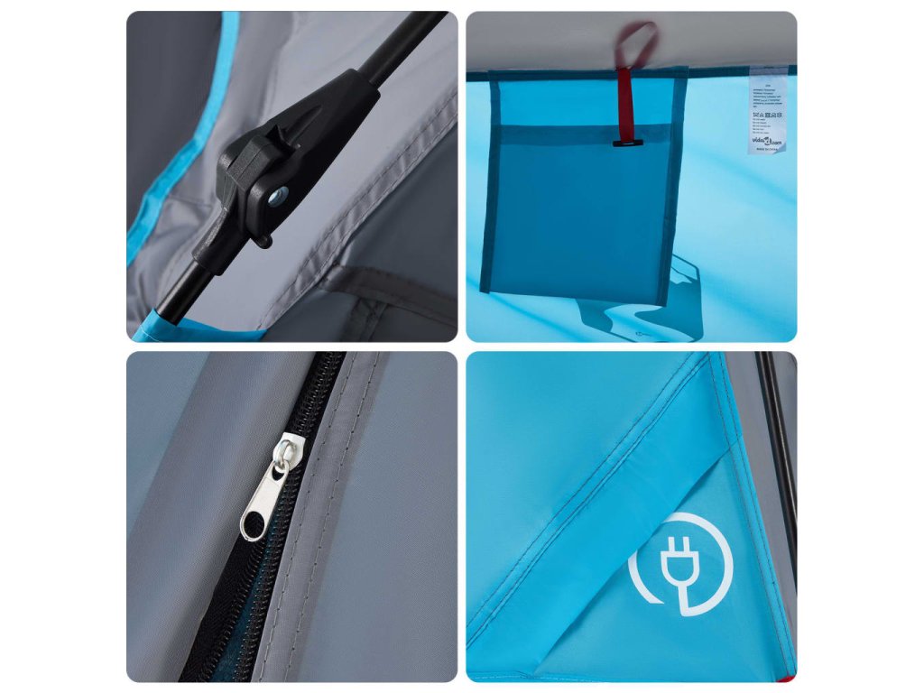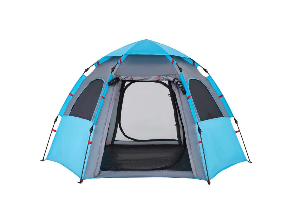 - Rychloupínací systém: Postavte stan snadno a bez námahy pomocí rychloupínacího systému! Stan položte na zem, roztáhněte předem sestavené tyče, dokud nezapadnou na své místo, a vše je hotovo!