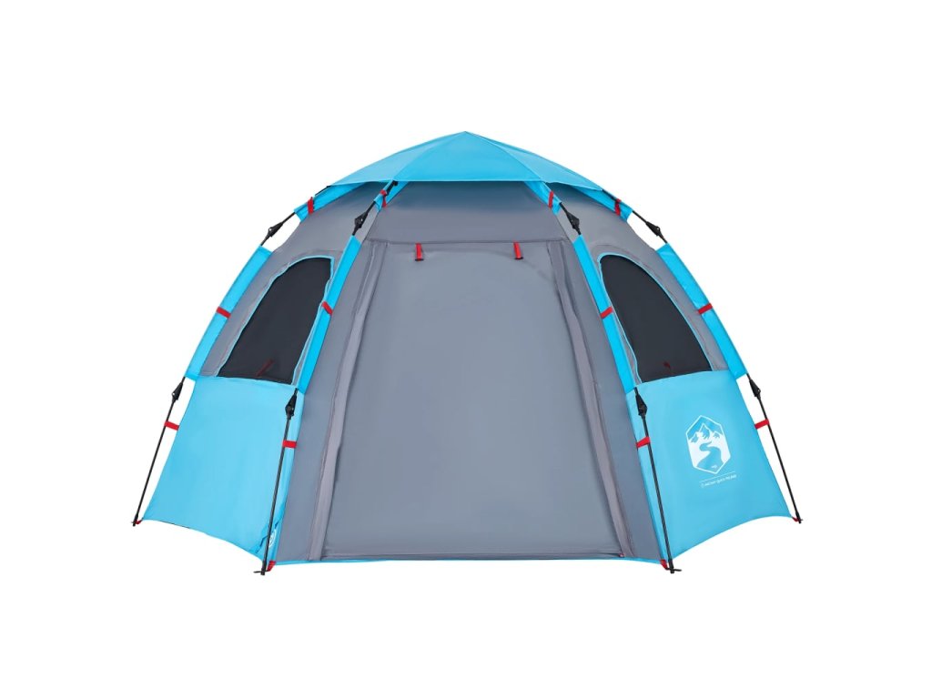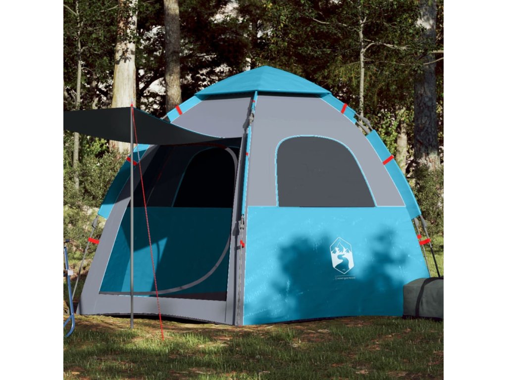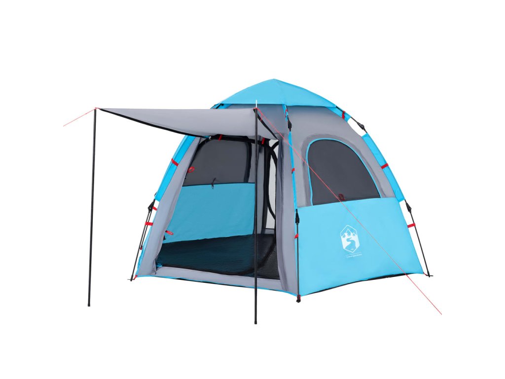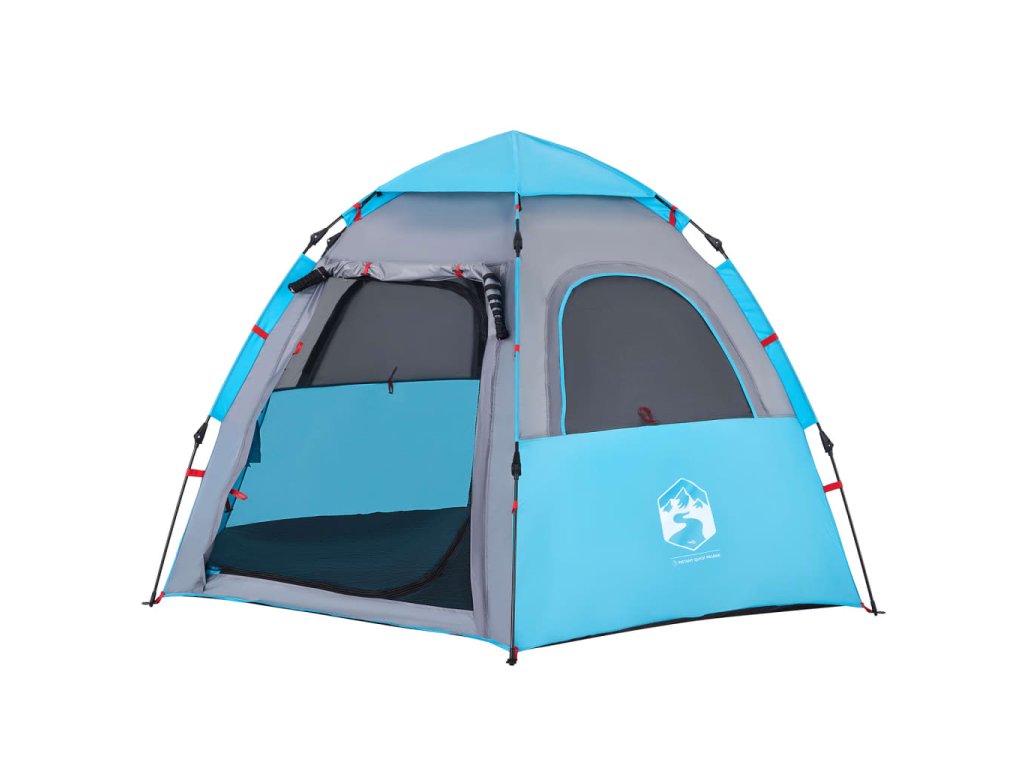 - Rychloupínací systém: Postavte stan snadno a bez námahy pomocí rychloupínacího systému! Stan položte na zem, roztáhněte předem sestavené tyče, dokud nezapadnou na své místo, a vše je hotovo!