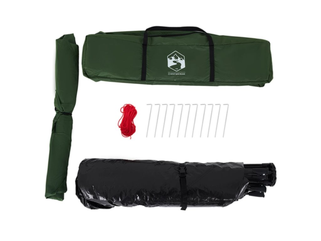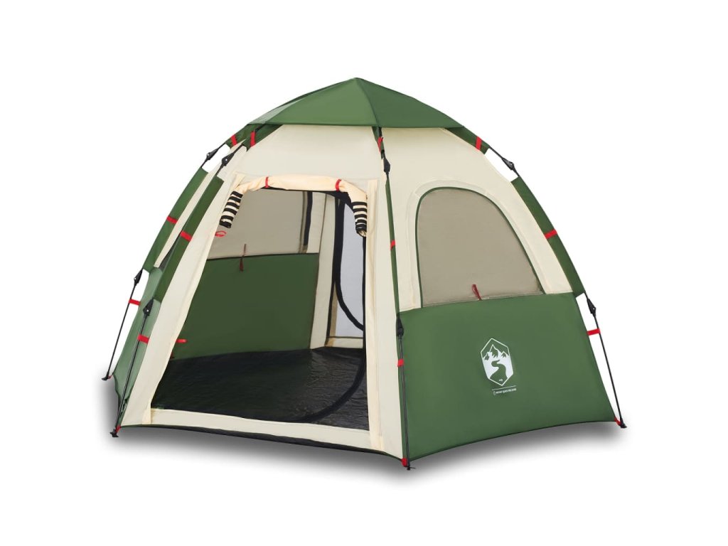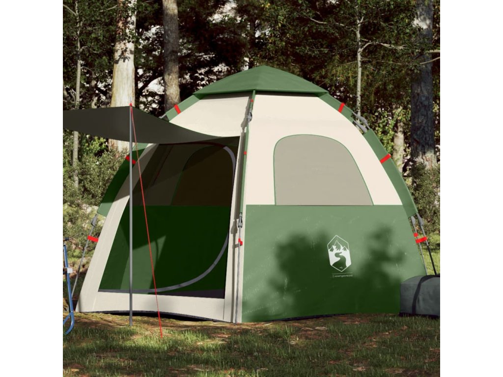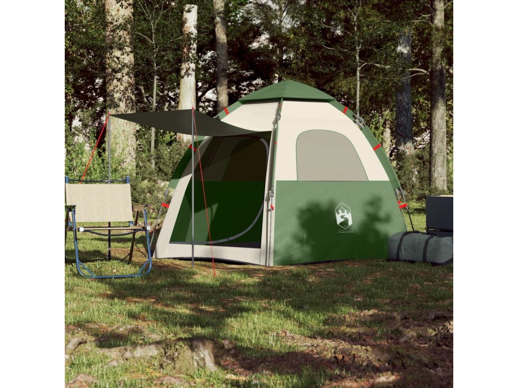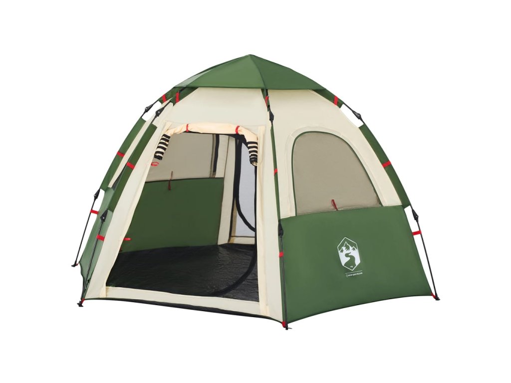- Rychloupínací systém: Postavte stan snadno a bez námahy pomocí rychloupínacího systému! Stan položte na zem, roztáhněte předem sestavené tyče, dokud nezapadnou na své místo, a vše je hotovo!