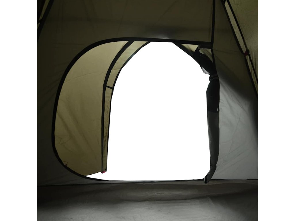 - Komplexní vodotěsnost: Tento kempingový stan je vyroben z polyesteru s PU povlakem, je nepromokavý a odolný proti větru. Podlepené švy účinně zabraňují pronikání dešťové vody, zatímco odolná podlážka pomáhá udržovat suchý a příjemný interiér.