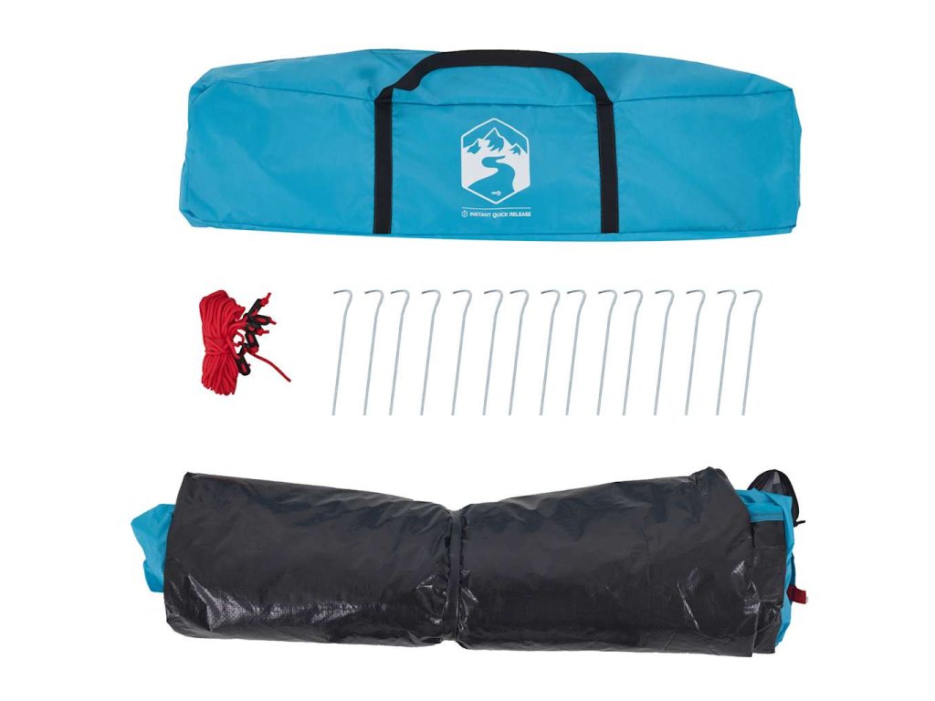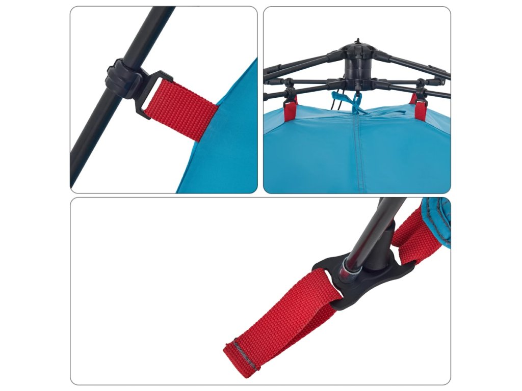 - Rychloupínací systém: Postavte stan snadno a bez námahy pomocí rychloupínacího systému! Stan položte na zem, roztáhněte předem sestavené tyče, dokud nezapadnou na své místo, a vše je hotovo!
