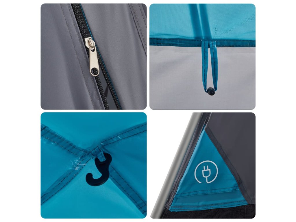 - Rychloupínací systém: Postavte stan snadno a bez námahy pomocí rychloupínacího systému! Stan položte na zem, roztáhněte předem sestavené tyče, dokud nezapadnou na své místo, a vše je hotovo!