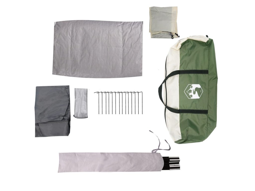 - Komplexní vodotěsnost: Tento kempingový stan je vyroben z polyesteru s PU povlakem, je nepromokavý a odolný proti větru. Podlepené švy účinně zabraňují pronikání dešťové vody, zatímco odolná podlážka pomáhá udržovat suchý a příjemný interiér.