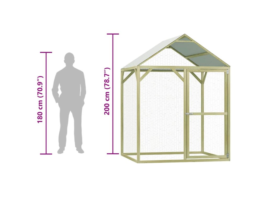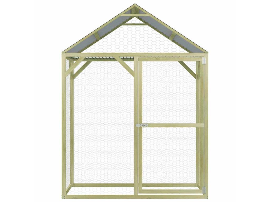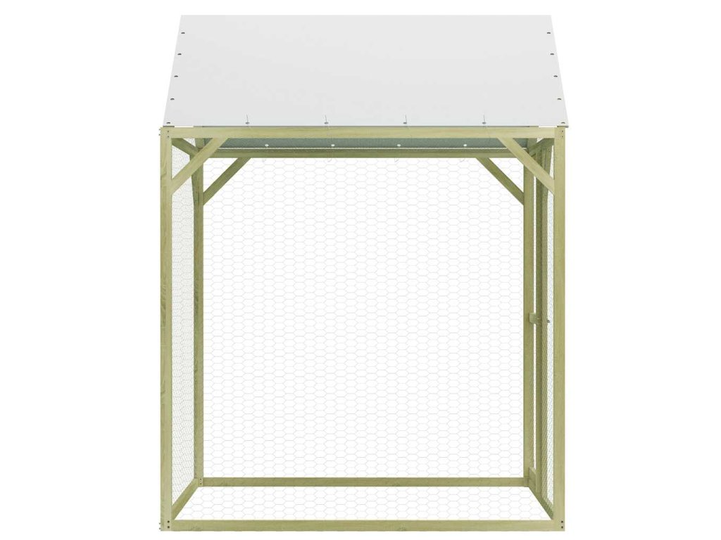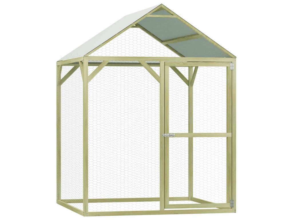 Kurník je zhotovený z borového dřeva, má skvělou životnost a nepodléhá klimatickým vlivům ani hnilobě. Střecha ze 100% polyesteru je voděodolná. Dvířka, která se hladce otvírají, lze zajistit západkami, takže vaše zvířata zůstanou v bezpečí. Jelikož klec tvoří pletivo z pozinkované oceli, můžete svá zvířata snadno sledovat. Klec pro drůbež je třeba sestavit.