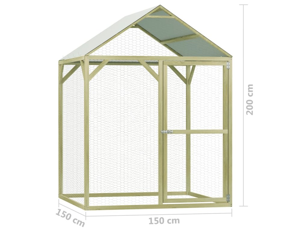 - Materiál: rám z impregnovaného borového dřeva + drát z pozinkované oceli + 100% polyesterová střecha