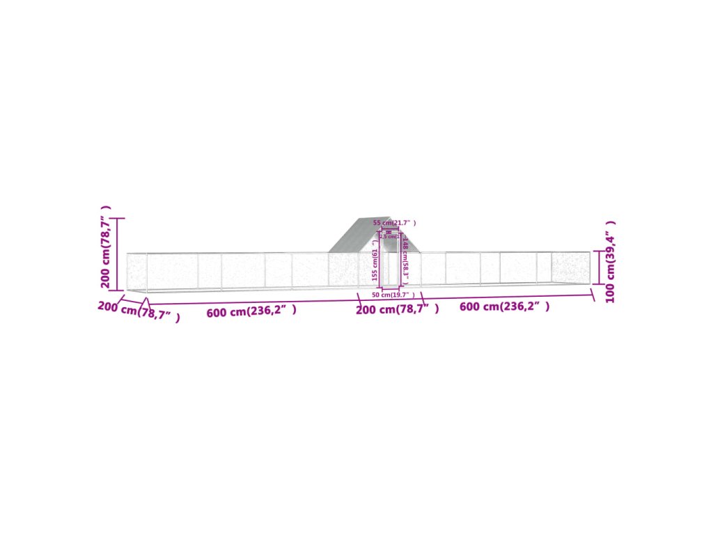- Celkové rozměry: 14 x 2 x 2 m (Š x H x V)