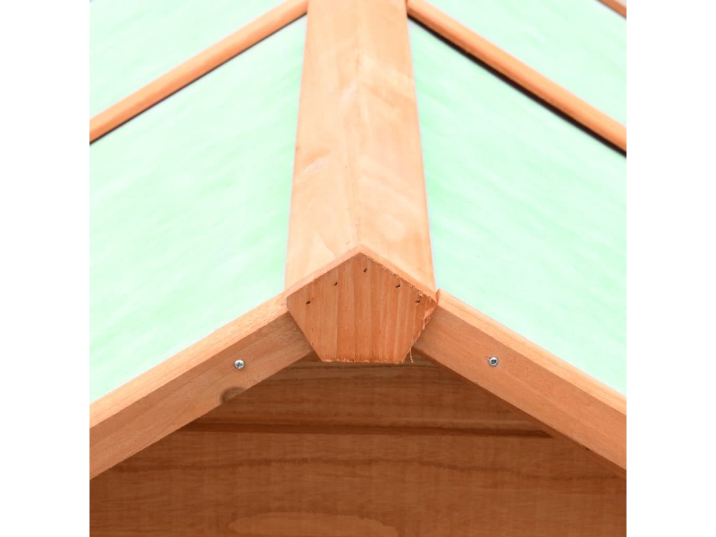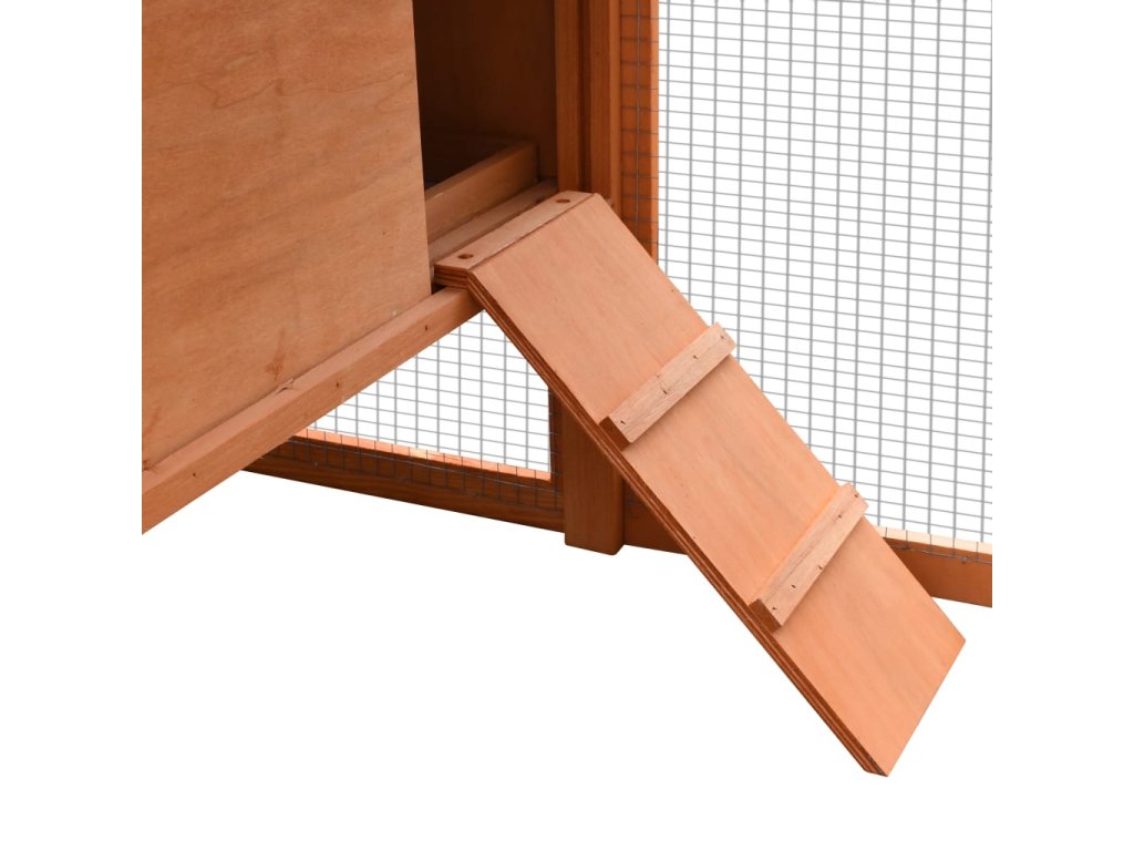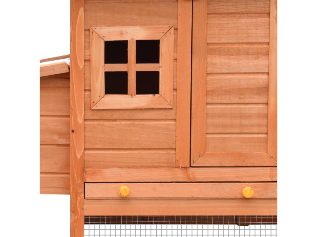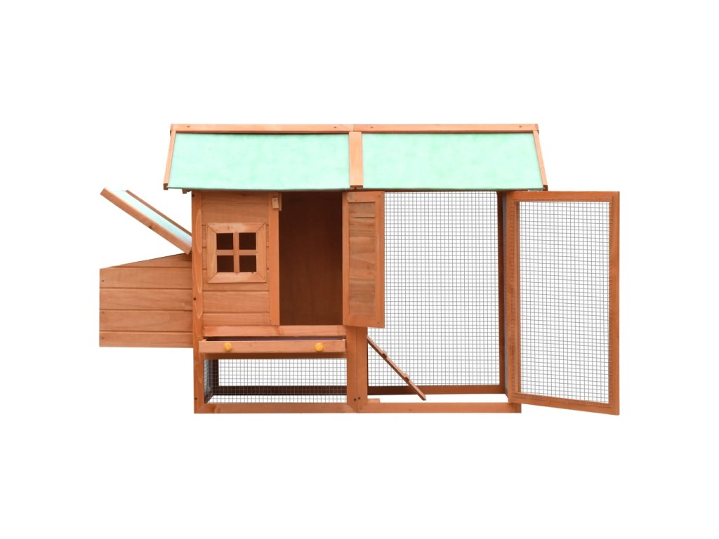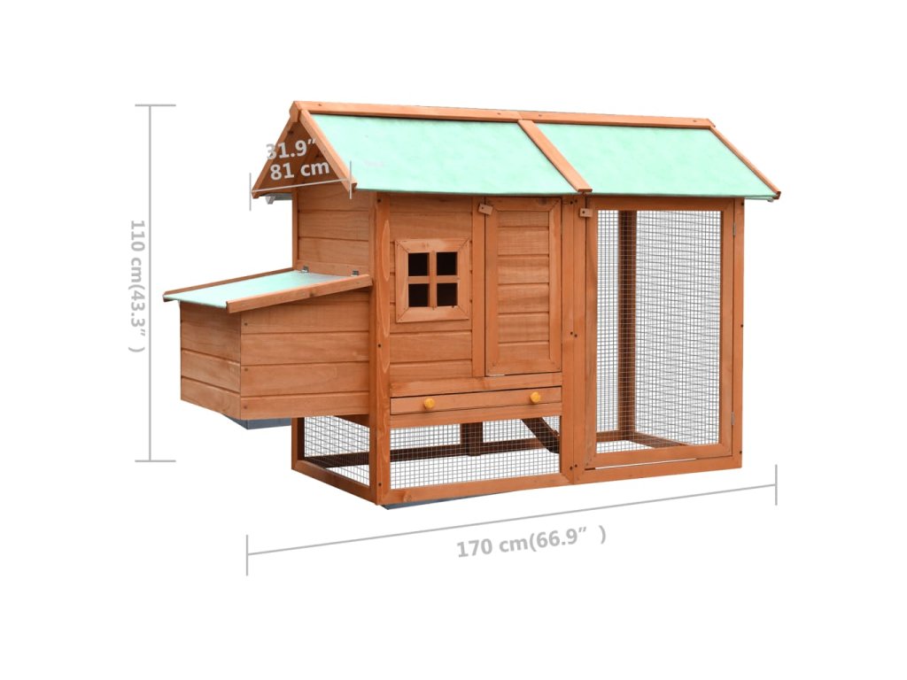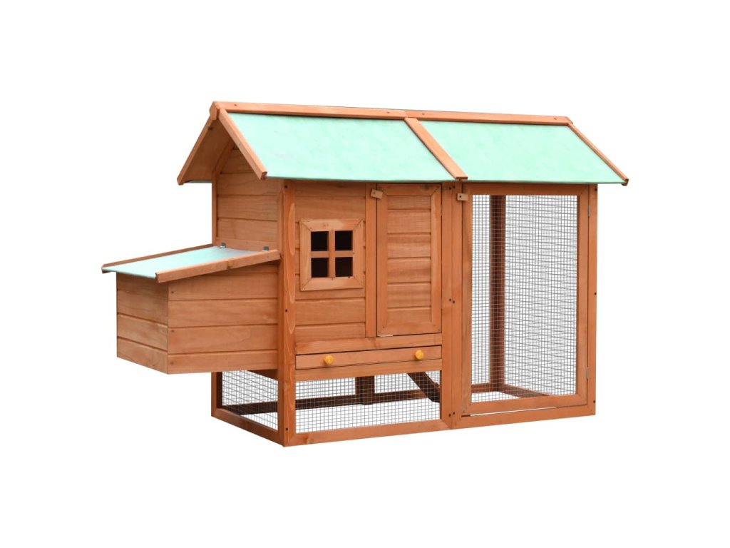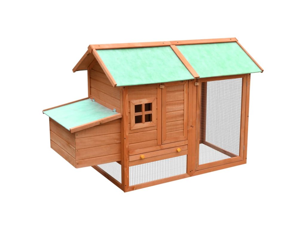Pletivová konstrukce z železných drátů vám umožní kuřata neustále sledovat a zajistí v kleci volné proudění čerstvého vzduchu. Kurník tvoří vysoce kvalitní dřevěný rám, který vám bude sloužit po dlouhá léta. Zelená střecha chrání obyvatele před deštěm a v útulném domečku se krásně vyspí. Ze spodního do horního patra vede rampa, po níž mohou zvířata snadno vyšplhat nahoru. Výsuvné dno klece usnadňuje její čištění. Dvířka lze jednoduše zavřít a zajistit zasouvacími západkami.