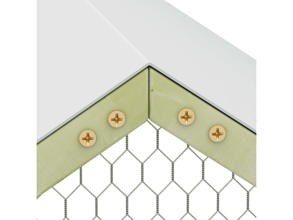 - Materiál: rám z impregnovaného borového dřeva + drát z pozinkované oceli + 100% polyesterová střecha