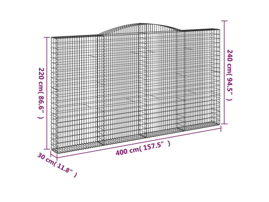 - Stabilní konstrukce: Klenutá gabionová klec je určená k naplnění kamením nebo štěrkem, aby byla dostatečně stabilní.