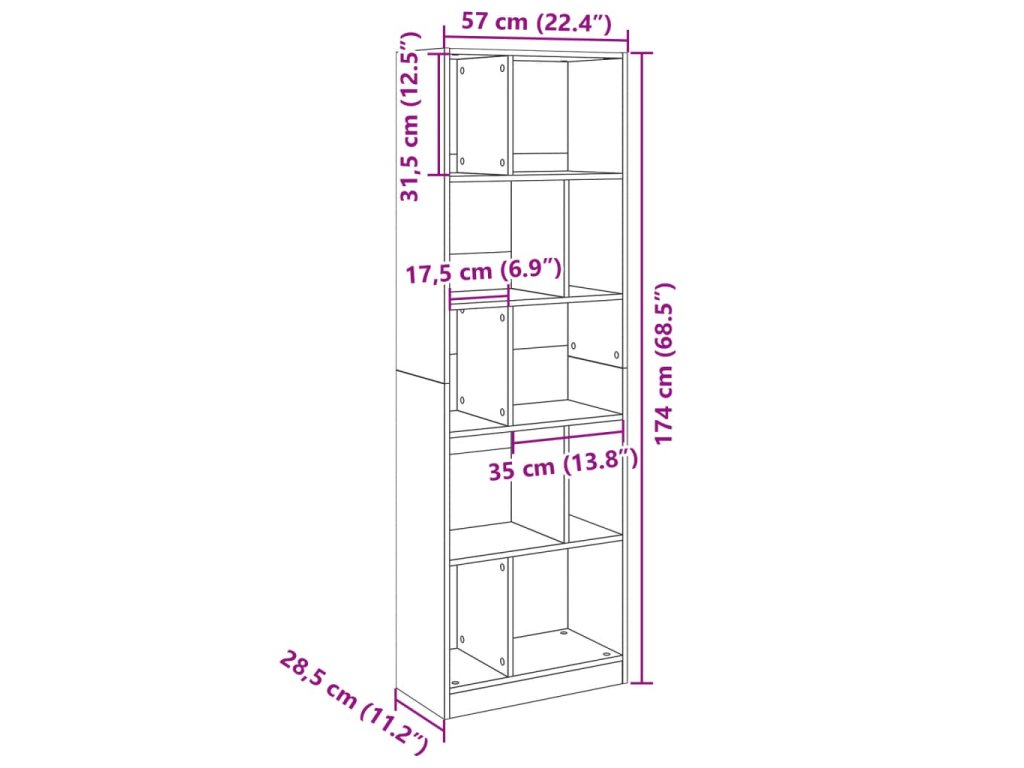 - Rozměry: 57 x 28,5 x 174 cm (Š x H x V)