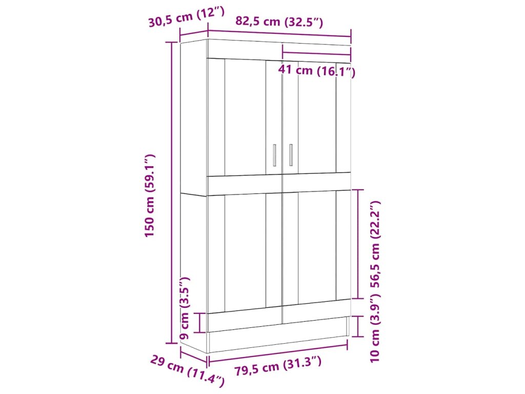 - Celkové rozměry: 82,5 x 30,5 x 150 cm (D x Š x V)