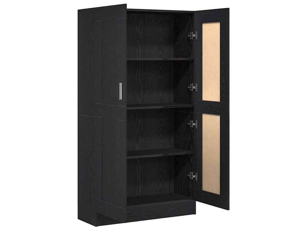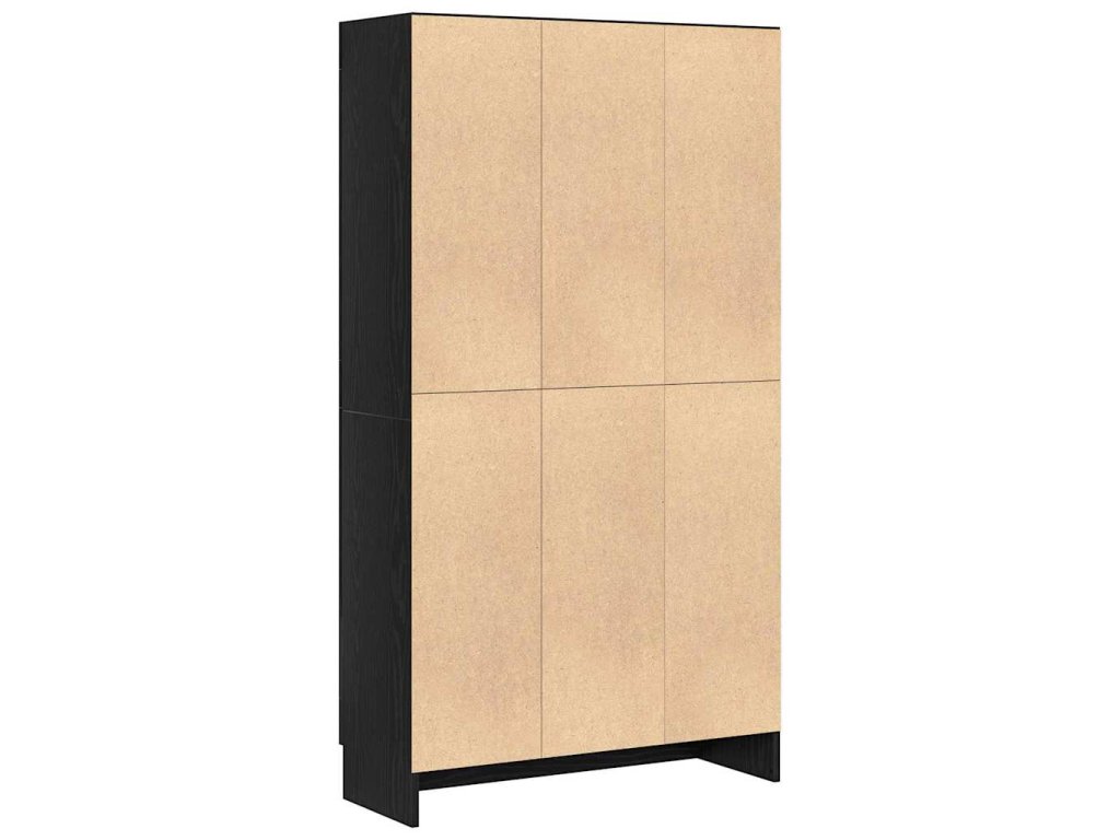 - Snadný přístup k dveřím na pantech Dveře na pantech umožňují hladký přístup, což vám dává možnost skrýt nebo vystavit předměty snadno. Černé dveře v kombinaci se stříbrnými úchyty dodávají eleganci a podtrhují celkový design.