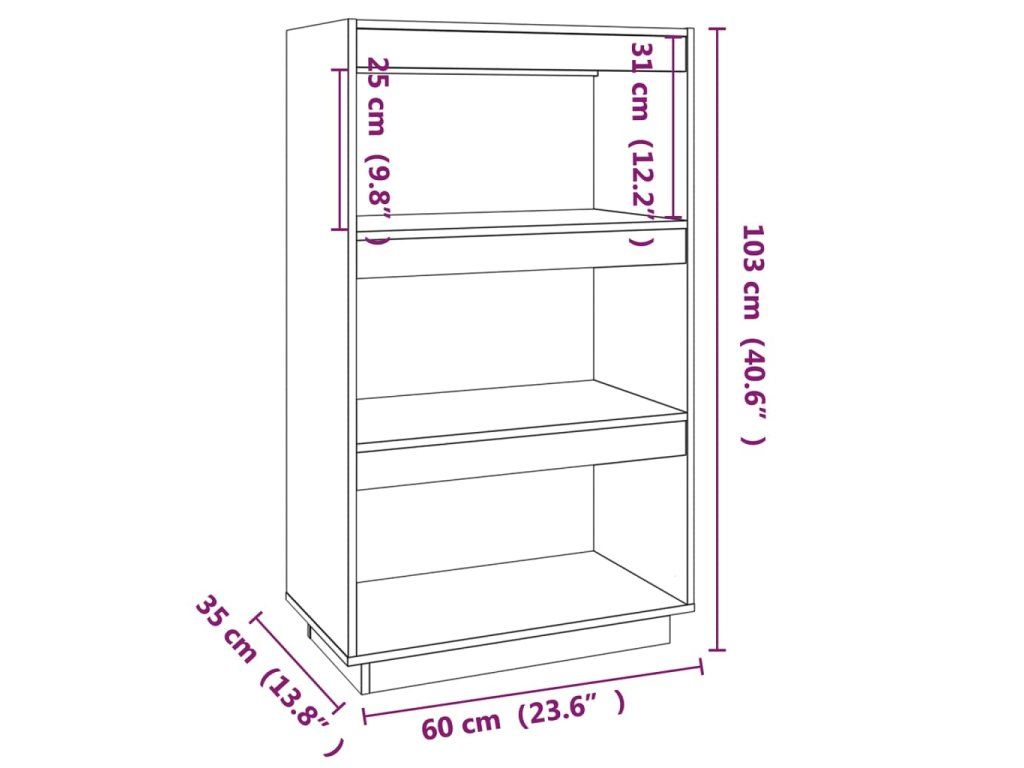 Knihovna je vyrobená z masivního borového dřeva, je tudíž robustní a stabilní. Nabízí spoustu místa pro přehledné ukládání časopisů, knih, DVD a multimediálních zařízení, které chcete mít po ruce, stejně jako i pro vystavení různých dekorativních předmětů. Tyto police na knihy s všestranným charakterem lze rovněž využít k rozdělení místnosti, například předsíně, chodby nebo jiného pokoje ve vašem domě. Knihovnu snadno očistíte vlhkým hadříkem.