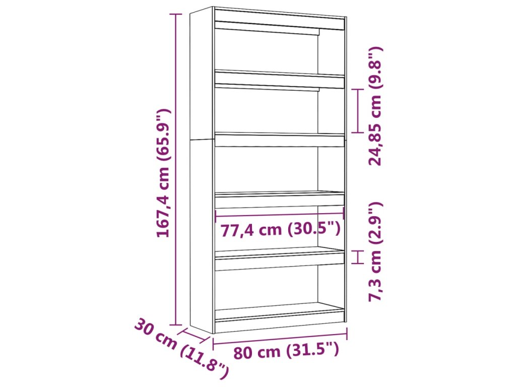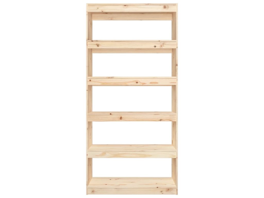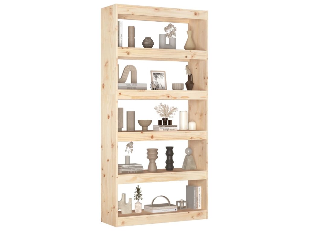 Knihovna je vyrobená z masivního borového dřeva, je tudíž robustní a stabilní. Pět velkých přihrádek vám poskytne spoustu místa pro přehledné ukládání časopisů, knih, DVD a multimediálních zařízení, které chcete mít po ruce, stejně jako i pro vystavení různých dekorativních předmětů. Tyto police na knihy s všestranným charakterem lze rovněž využít k rozdělení místnosti, například předsíně, chodby nebo jiného pokoje ve vašem domě. Knihovnu snadno očistíte vlhkým hadříkem.