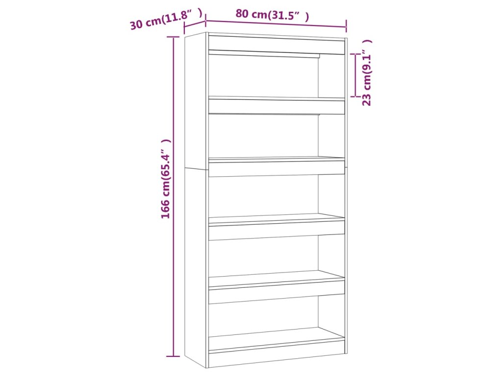 Regál na knihy je robustní a stabilní. Nabízí spoustu místa pro přehledné ukládání časopisů, knih, DVD a multimediálních zařízení, které chcete mít po ruce, stejně jako i pro vystavení různých dekorativních předmětů. Tyto police na knihy s všestranným charakterem lze rovněž využít k rozdělení místnosti, například předsíně, chodby nebo jiného pokoje ve vašem domě. Knihovnu snadno očistíte vlhkým hadříkem.