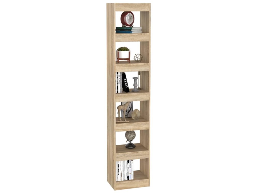 Regál na knihy je robustní a stabilní. Nabízí spoustu místa pro přehledné ukládání časopisů, knih, DVD a multimediálních zařízení, které chcete mít po ruce, ale i pro vystavení různých dekorativních předmětů. Tyto police na knihy s všestranným charakterem lze rovněž využít k rozdělení místnosti, například předsíně, chodby nebo jiného pokoje ve vašem domě. Knihovnu snadno očistíte vlhkým hadříkem.