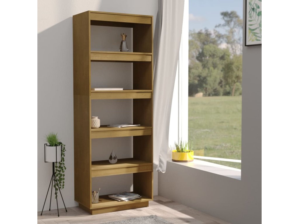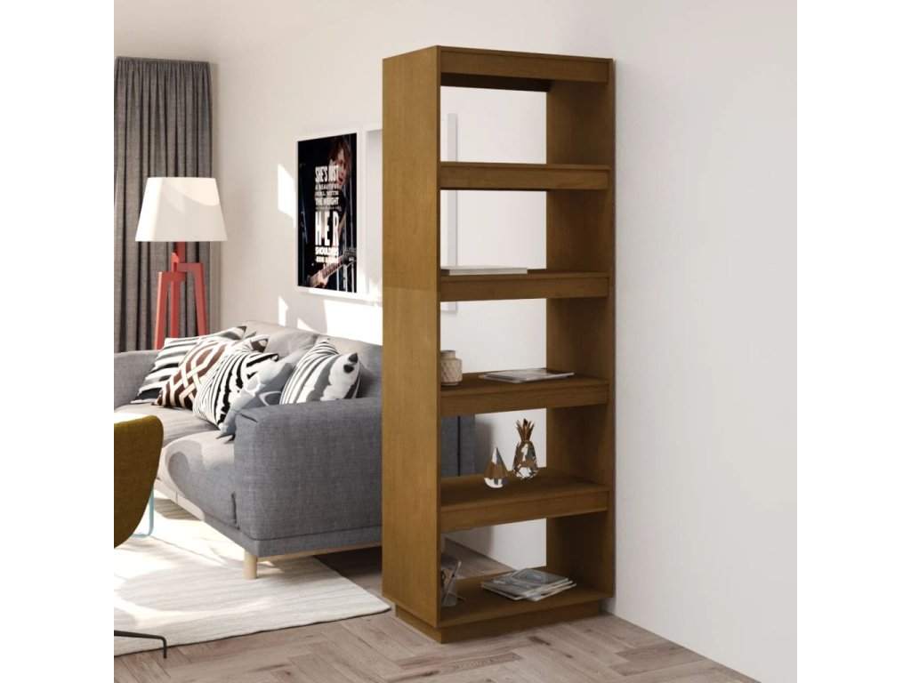 Knihovna je vyrobená z masivního borového dřeva, je tudíž robustní a stabilní. Nabízí spoustu místa pro přehledné ukládání časopisů, knih, DVD a multimediálních zařízení, které chcete mít po ruce, stejně jako i pro vystavení různých dekorativních předmětů. Tyto police na knihy s všestranným charakterem lze rovněž využít k rozdělení místnosti, například předsíně, chodby nebo jiného pokoje ve vašem domě. Knihovnu snadno očistíte vlhkým hadříkem.