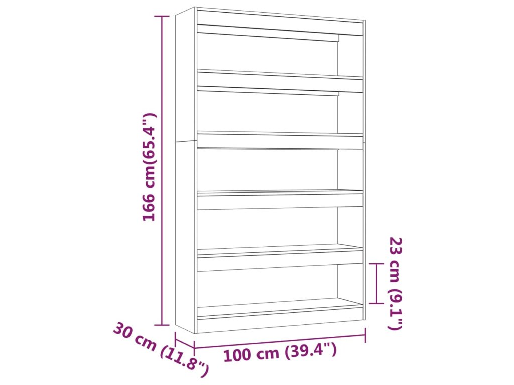 Regál na knihy je robustní a stabilní. Nabízí spoustu místa pro přehledné ukládání časopisů, knih, DVD a multimediálních zařízení, které chcete mít po ruce, stejně jako i pro vystavení různých dekorativních předmětů. Tyto police na knihy s všestranným charakterem lze rovněž využít k rozdělení místnosti, například předsíně, chodby nebo jiného pokoje ve vašem domě. Knihovnu snadno očistíte vlhkým hadříkem.