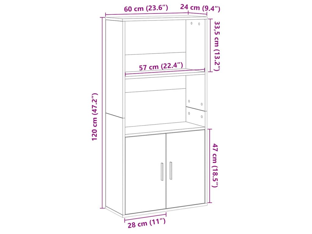 - Dostatek úložného prostoru: Tato úložná skříň má dvě police a dvě přihrádky s dvířky, které poskytují dostatek prostoru pro přehledné uložení vaší sbírky knih, časopisů a dokumentů.