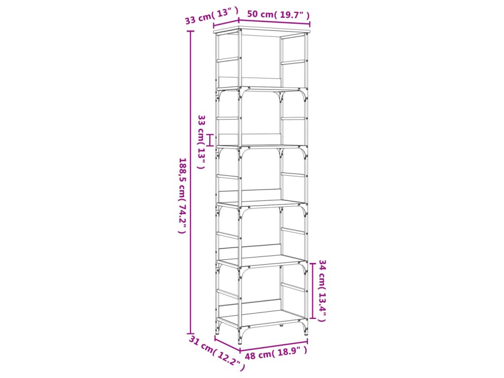 - Celkové rozměry: 50 x 33 x 188,5 cm (Š x H x V)