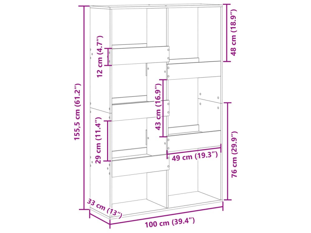 - Všestranná police: Regál na knihy lze rovněž využít k rozdělení místnosti, což z něj činí ideální volbu pro váš obytný prostor.