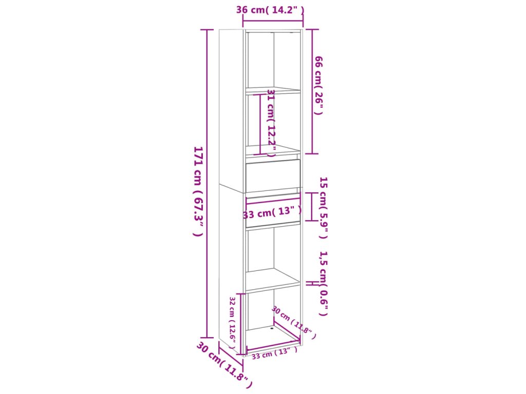 - Rozměry: 36 x 30 x 171 cm (Š x H x V)