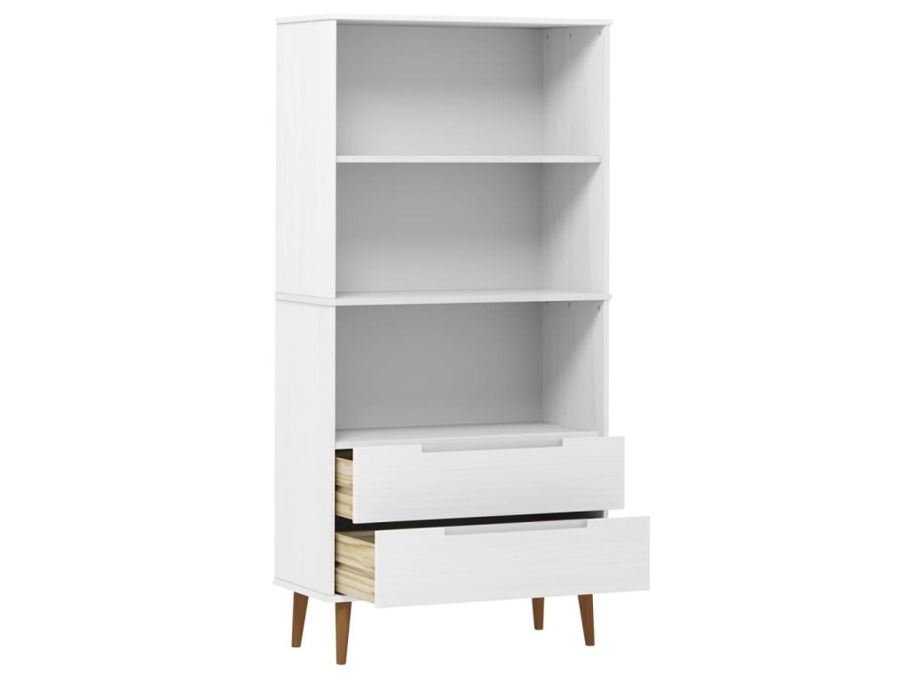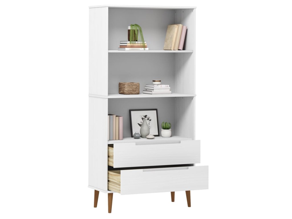Tato klasická dřevěná knihovna se skandinávským designem je dekorativním i praktickým doplňkem vašeho současného interiéru.