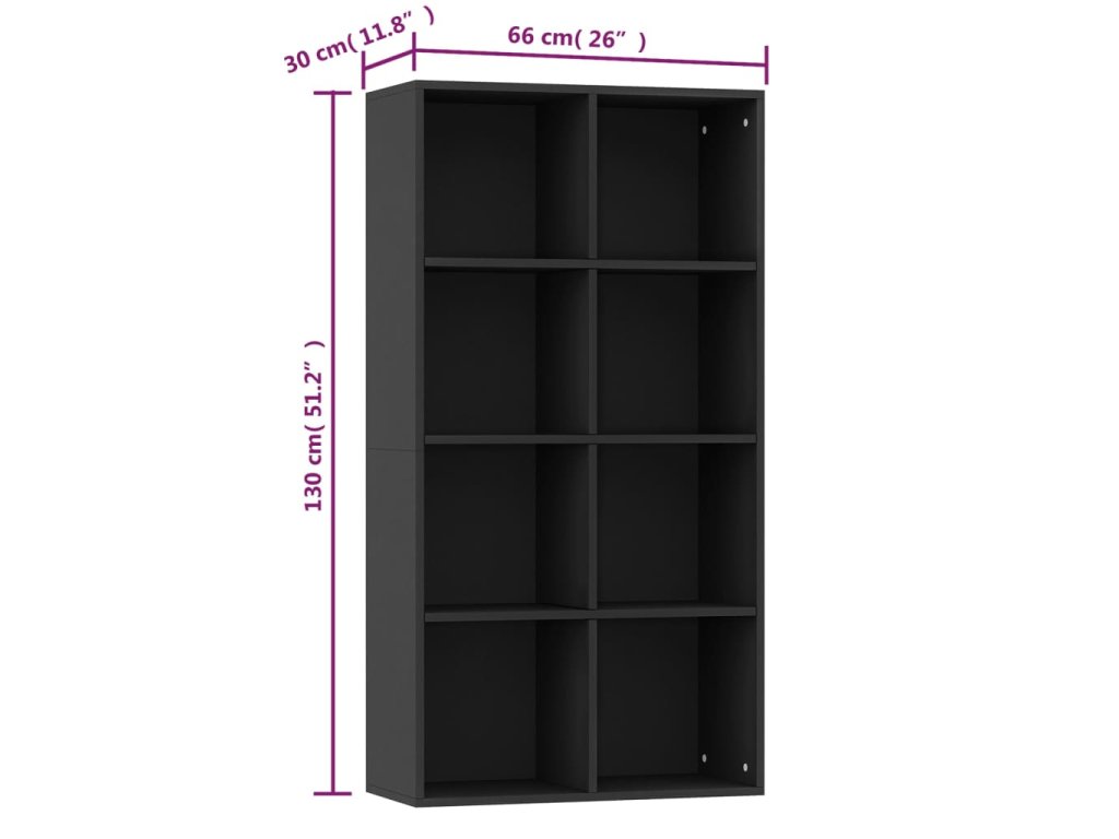 Knihovna je vyrobena z kompozitního dřeva, které zajišťuje její robustnost, odolnost a dlouhou životnost. Osm přihrádek poskytuje spoustu prostoru pro uložení a přehledné uspořádání vašich časopisů, knih, DVD a multimediálních zařízení v dosahu ruky. Jelikož má chytrý a všestranný charakter, lze regál na knihy rovněž postavit horizontálně a využít jej jako příborník. Představuje proto ideální doplněk do vašeho bydlení.