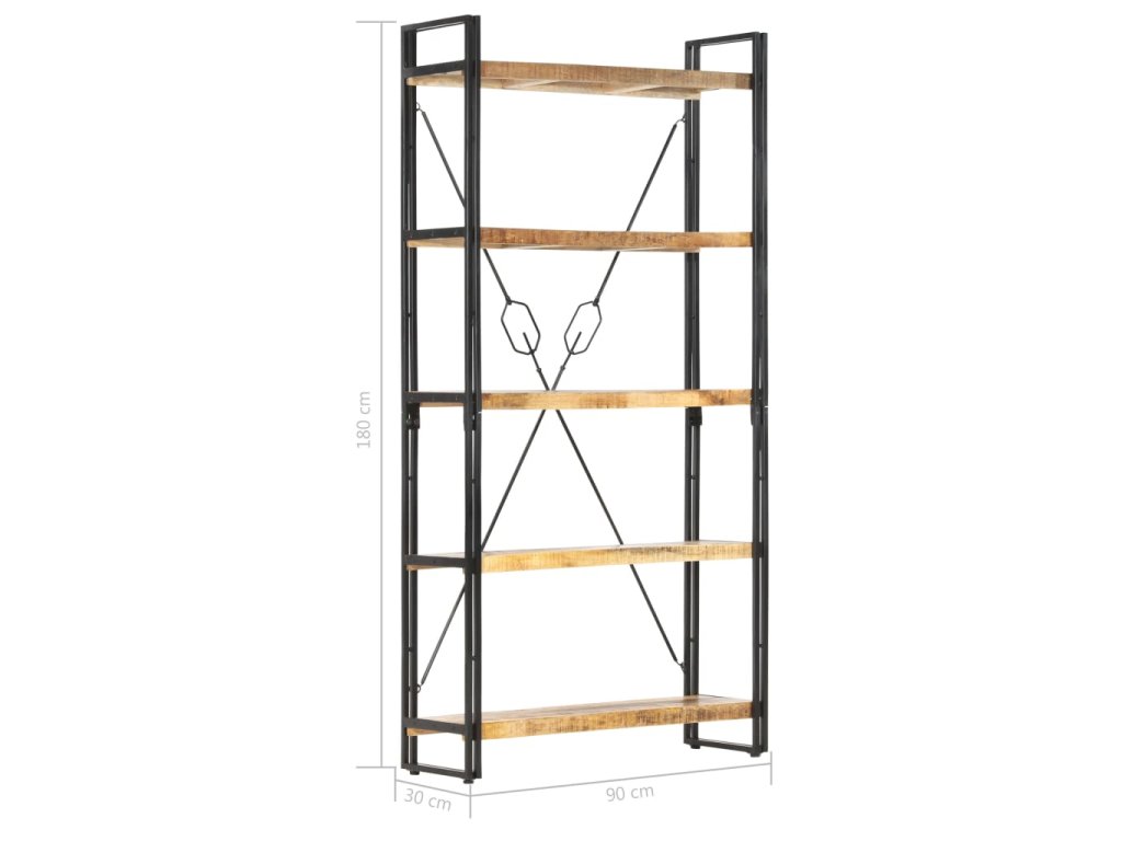 Knihovna má pevný ocelový rám s práškovým nástřikem, jenž jí dodává industriální vzhled. Poličky jsou vyrobeny z masivního hrubého mangovníkového dřeva, které je nejen pevné, odolné, ale zároveň i krásně vypadá. Jeho řemeslné zpracování mu navíc dodává velkolepý retro styl. Každý krok výrobního procesu je prováděn s největší péčí, ať už se jedná o leštění, natírání nebo lakování. Díky řemeslnému zpracování a překrásné kresbě dřeva je každý kus nábytku jedinečný a lehce se odlišuje od všech ostatních.