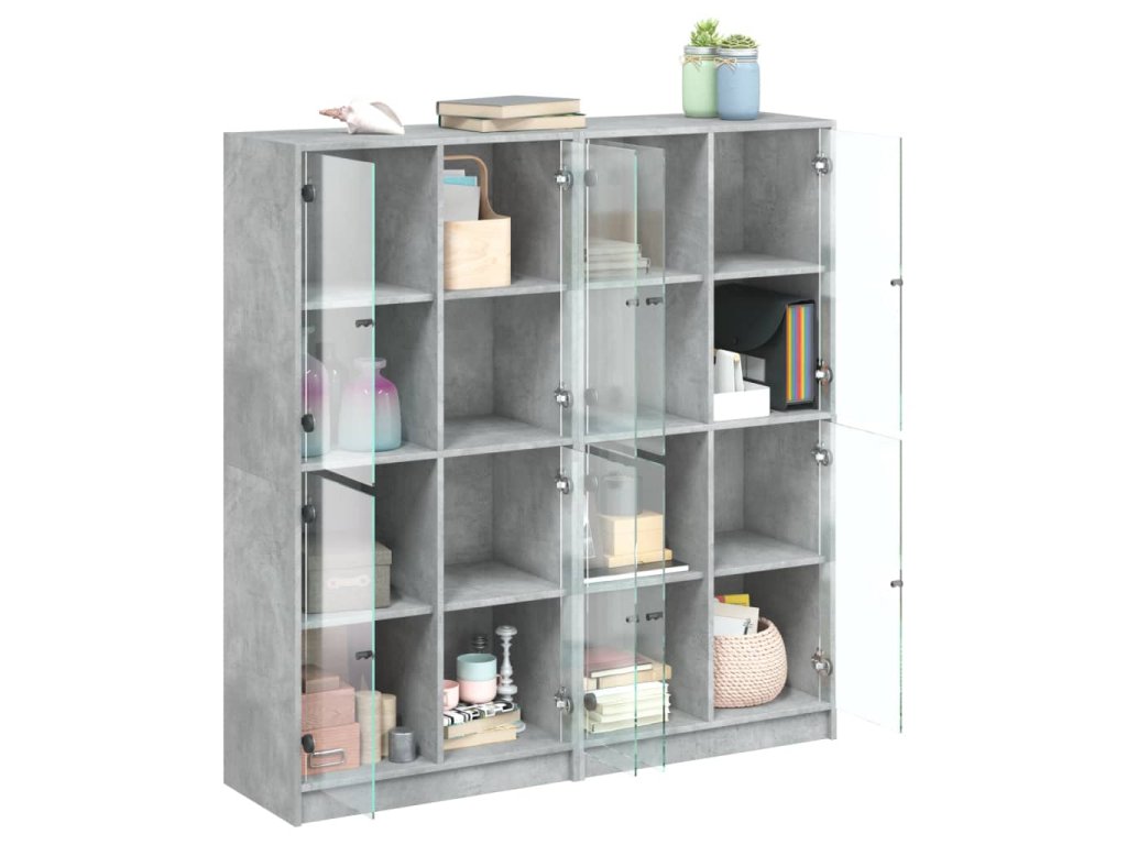 - Praktický design: Chraňte své nezbytnosti před prachem tím, že je schováte za skleněná dvířka. Černé úchytky navíc usnadňují otevírání knihovny.