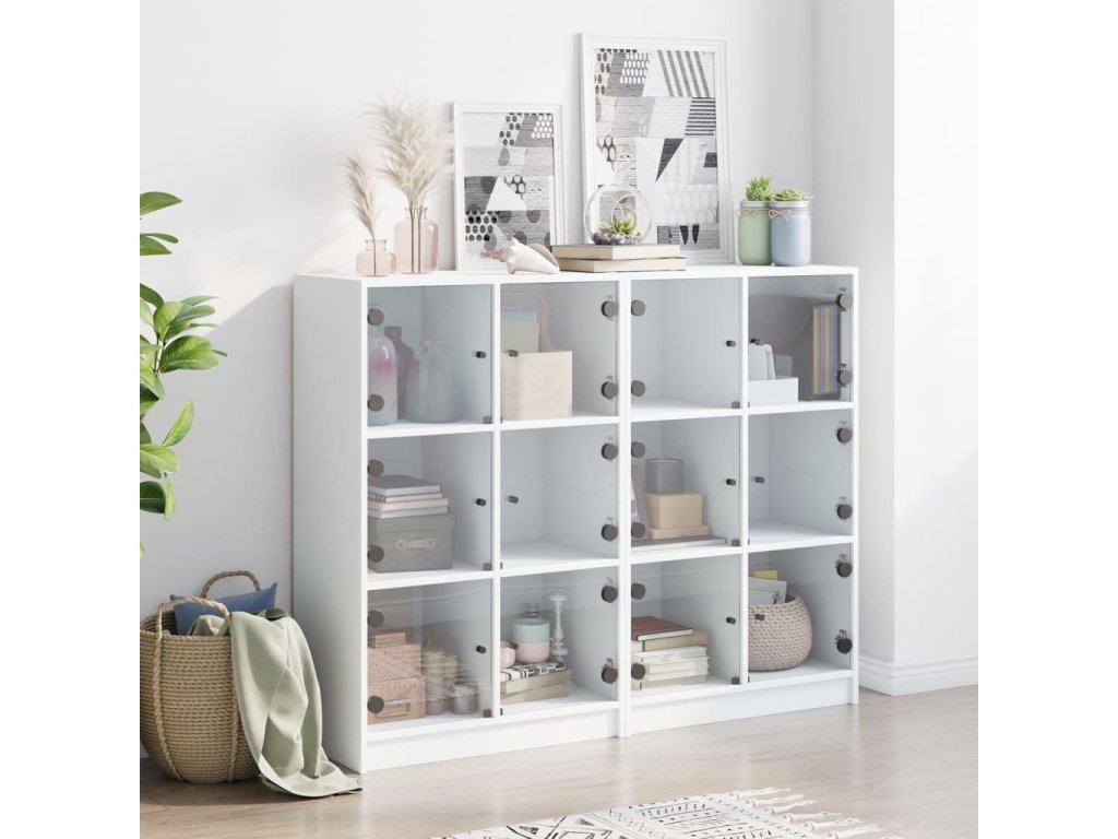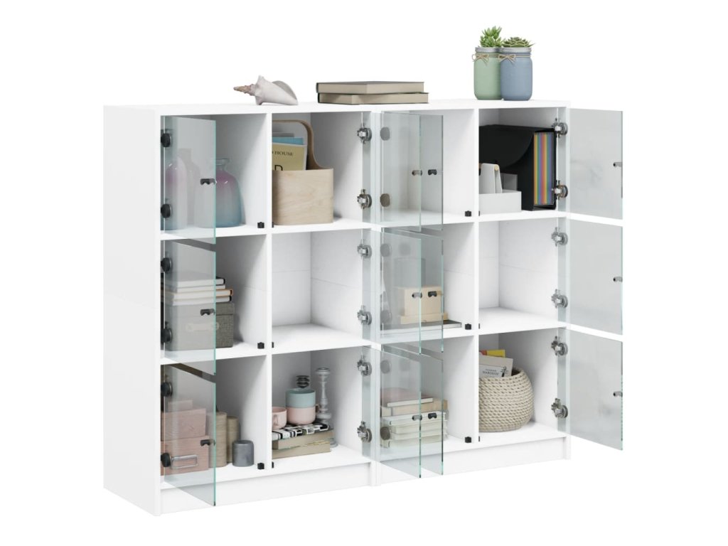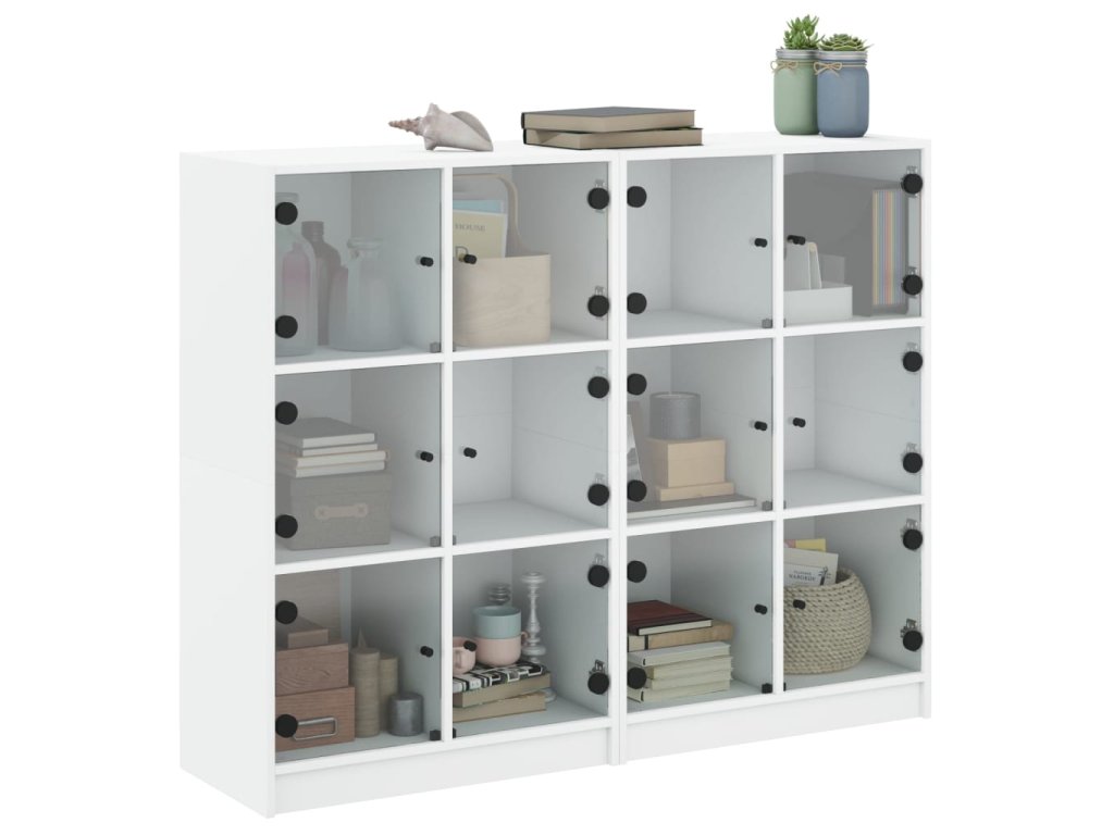 - Praktický design: Chraňte své nezbytnosti před prachem tím, že je schováte za skleněná dvířka. Černé úchytky navíc usnadňují otevírání knihovny.