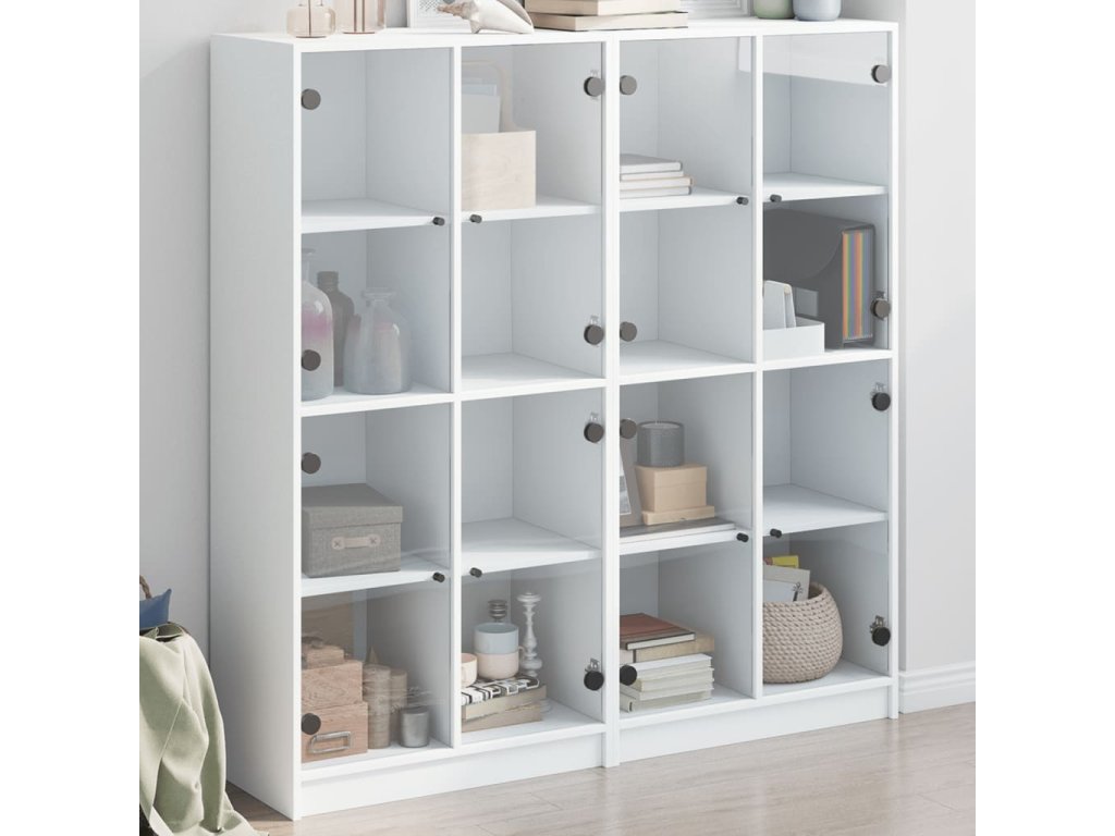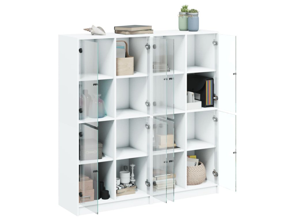 - Praktický design: Chraňte své nezbytnosti před prachem tím, že je schováte za skleněná dvířka. Černé úchytky navíc usnadňují otevírání knihovny.