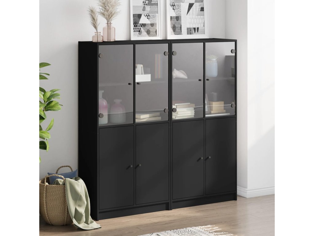 - Praktický design: Chraňte své nezbytnosti před prachem tím, že je schováte za dvířka. Úchytky navíc usnadňují otevírání knihovny.