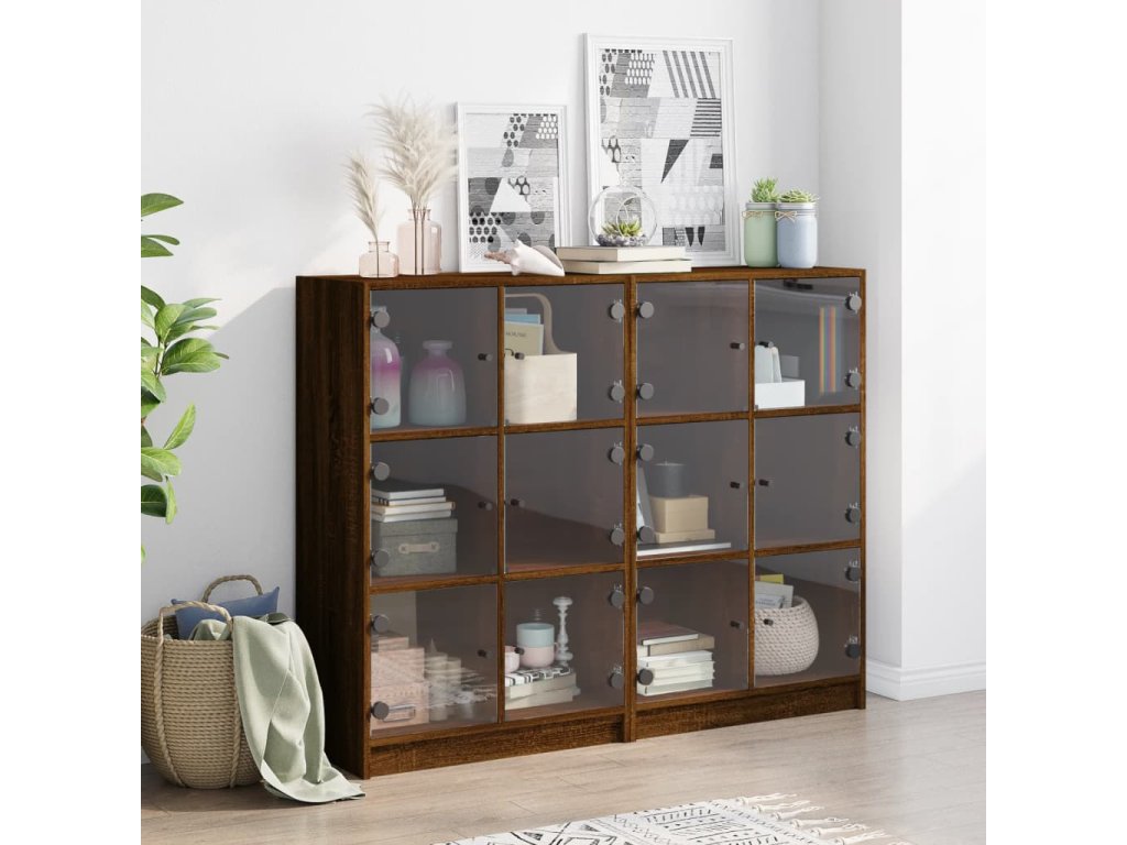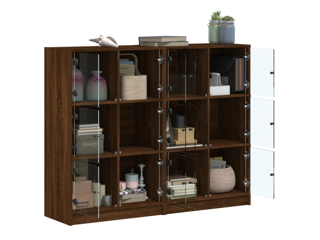 - Praktický design: Chraňte své nezbytnosti před prachem tím, že je schováte za skleněná dvířka. Černé úchytky navíc usnadňují otevírání knihovny.