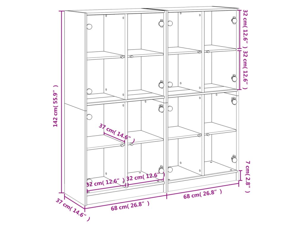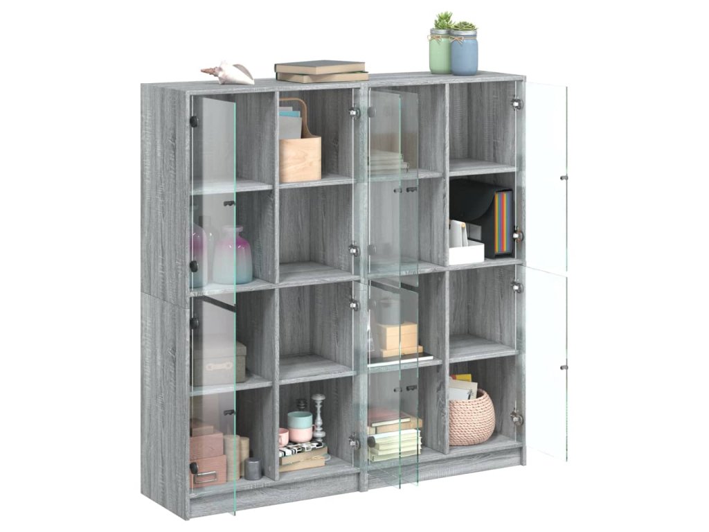 - Praktický design: Chraňte své nezbytnosti před prachem tím, že je schováte za skleněná dvířka. Černé úchytky navíc usnadňují otevírání knihovny.
