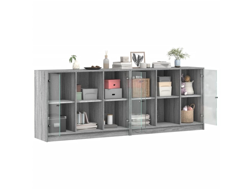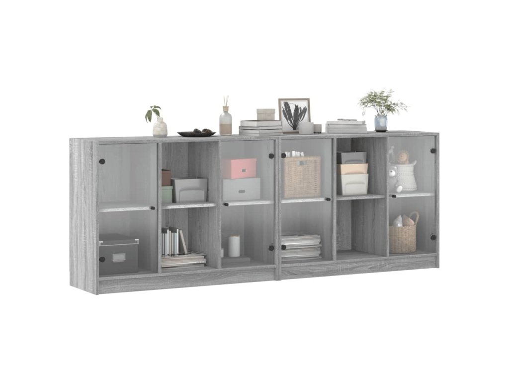 - Praktický design: Chraňte své nezbytnosti před prachem tím, že je schováte za skleněná dvířka. Černé úchytky navíc usnadňují otevírání knihovny.