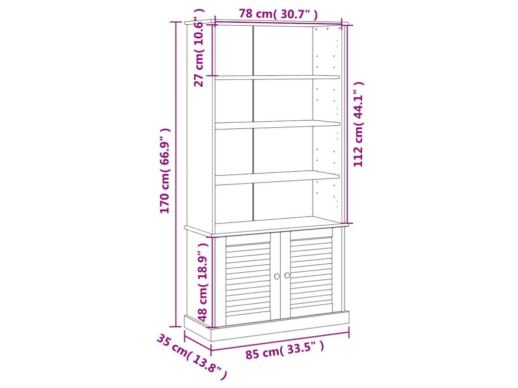 - Dostatek úložného prostoru: Tato úložná skříňka s policemi poskytuje dostatek prostoru pro přehledné uložení sbírky knih, časopisů a dokumentů.