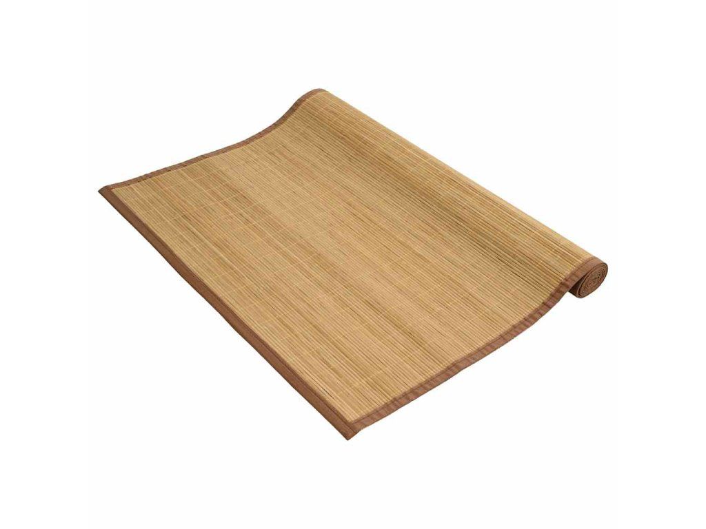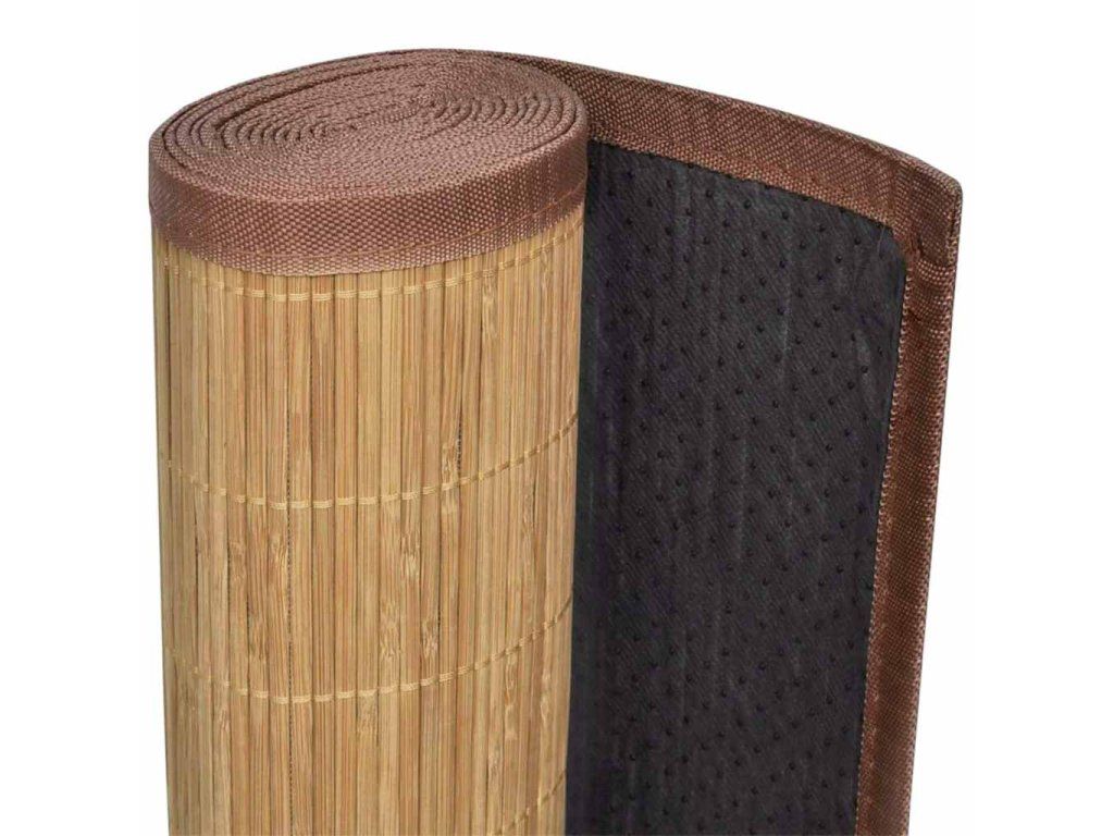 Spodní strana bambusového koberce je podložená neklouzavou PVC vrstvou, která poskytuje nejen vynikající tlumení, ale navíc udržuje koberec na místě. Polypropylenové okraje dodávají bambusové rohoži pečlivě dokončený vzhled. Koberec je vyrobený z přírodního pevného bambusu a snadno se čistí.