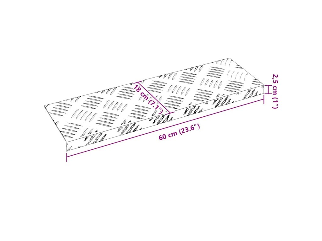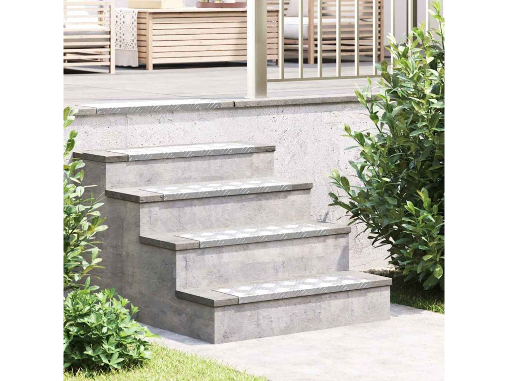 - Hliníková konstrukce Tyto schodišťové nášlapy jsou vyrobené z pevného hliníku, takže zvládnou každodenní použití a venkovní podmínky. Hliník je přirozeně odolný vůči korozi, tudíž drží dlouho a dodává tvému prostoru příjemný kovový vzhled.