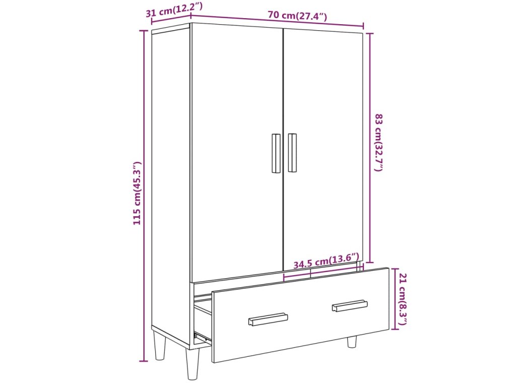 - Rozměry: 70 x 31 x 115 cm (Š x H x V)