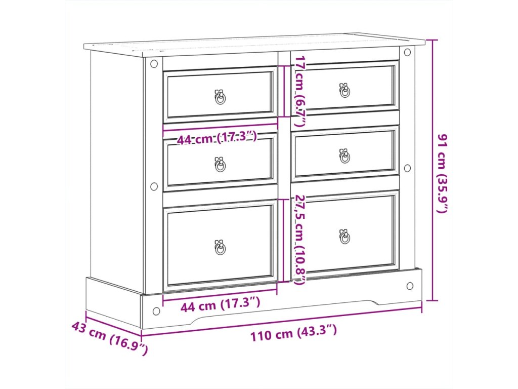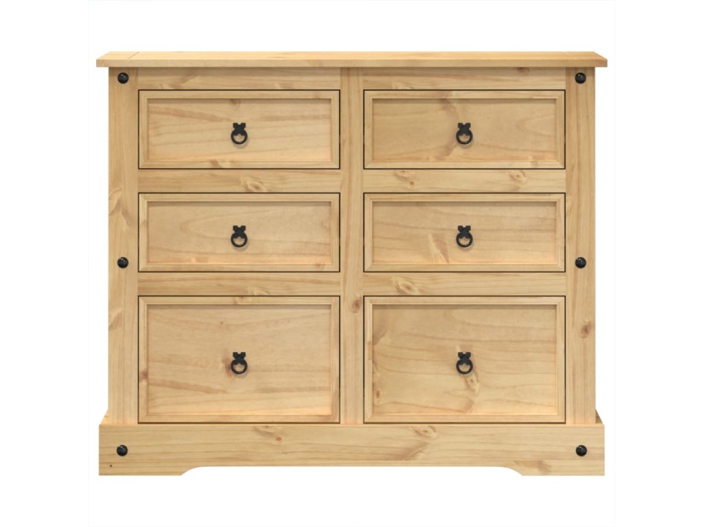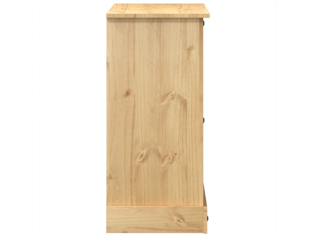 - Masivní borové dřevo: Masivní borové dřevo je krásný přírodní materiál. Borové dřevo má rovnou kresbu a obsahuje suky, které materiálu dodávají jeho charakteristický, rustikální vzhled. Komoda je vyrobena z masivního borového dřeva a je odolná a robustní.