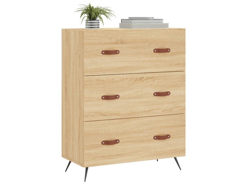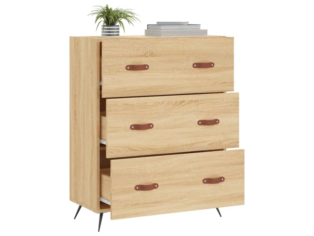 - Odolný materiál: Kompozitní dřevo je mimořádně kvalitní, má hladký povrch a vyznačuje se pevností, stabilitou a odolností proti vlhkosti. Komoda je zhotovená z kompozitního dřeva, takže se snadno čistí vlhkým hadříkem.